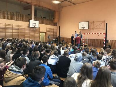 Celem spotkania było zwiększenie świadomości młodzieży o szkodach zdrowotnych i społecznych wynikających z używania substancji psychoaktywnych oraz zmniejszenie skali zjawiska używania narkotyków i poprawa funkcjonowania społecznego wśród nastolatków. Grupa „Wyrwani z niewoli” (WZN) w składzie Jacek Zajkowski i Piotr Zalewski zajmująca się od 6 lat działalnością profilaktyczną na rzecz dzieci i młodzieży, pokazała świat, w którym można lepiej żyć bez narkotyków, alkoholu, przemocy, pornografii.