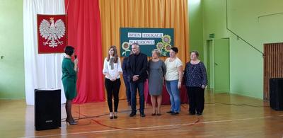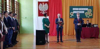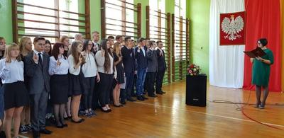 W dniu 15 października 2018 r. z okazji Dnia Edukacji Narodowej w naszej szkole odbyła się uroczysta akademia oraz ślubowanie uczniów klas pierwszych Liceum Ogólnokształcącego i Branżowej Szkoły I stopnia. W uroczystości uczestniczyli zaproszeni goście: Pan Bogdan Pawłowski Burmistrz Kamieńska, ks. proboszcz Mieczysław Wach, Przewodnicząca Komisji Oświaty, Kultury, Zdrowia, Sportu i Spraw Socjalnych p. Alicja Grządzielska Deska, Przewodnicząca Rady Rodziców p. Urszula Alama, rodzice uczniów klas pierwszych, uczniowie, nauczyciele, pracownicy administracji i obsługi. Pani Dyrektor Ewa Ziółkowska życzyła wszystkim nauczycielom i pracownikom szkoły sukcesów osobistych i zawodowych oraz dużo radości z wykonywanej pracy. Wręczyła nagrody nauczycielom oraz pracownikom administracji i obsługi w uznaniu za ich szczególne zaangażowanie w pracy zawodowej. Najserdeczniejsze życzenia dla nauczycieli i pracowników szkoły złożył p. Bogdan Pawłowski - Burmistrz Kamieńska. Następnie uczniowie klas pierwszych złożyli uroczyste przyrzeczenia. Po części oficjalnej uczniowie zaprezentowali część artystyczną