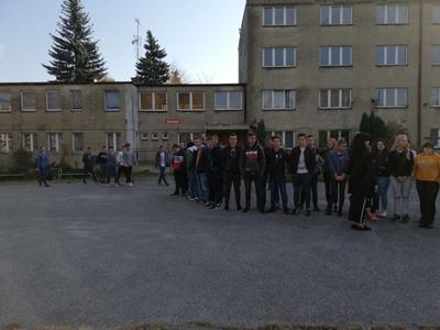 5-krotny krótki sygnał dźwiękowy usłyszeli uczniowie naszej szkoły w dn. 17 października br. Wszyscy, pod opieką nauczycieli w pośpiechu, ale w porządku opuszczali budynek szkoły i gromadzili się w wyznaczonym miejscu. Celem ćwiczeń było przypomnienie planu ewakuacji szkoły i wypracowanie właściwych zachowań podczas ewentualnych zagrożeń.