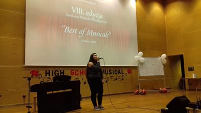 W dniu 05.03.2019r. uczennica naszej szkoły Ewa Bińczyk (kl I LO) uczestniczyła w VII edycji Konkursu Piosenki Obcojęzycznej w Zespole Szkół Ponadgimnazjalnych w Kleszczowie. Motyw przewodni tegorocznego konkursu: "Best of Musicals".