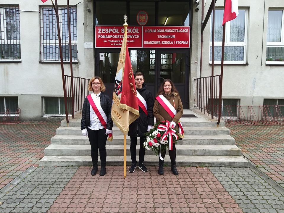 W dniu 11 listopada 2019 roku uczestniczyliśmy w obchodach Narodowego Święta Niepodległości w gminie Kamieńsk. Po 123 latach niewoli Polska odzyskała wolność, o którą walczyły pokolenia, oddając w tej walce wartość najcenniejszą – swoje życie. Jest to dzień radosny dla każdego z nas, manifestujemy bowiem w tym dniu swój patriotyzm. Burmistrz Kamieńska Bogdan Pawłowski złożył kwiaty pod tablicą upamiętniającą odzyskanie niepodległości, umieszczoną na budynku Urzędu Miejskiego w Kamieńsku. Następnie mieszkańcy, poczty sztandarowe oraz przedstawiciele organizacji społecznych przemaszerowali do kościoła parafialnego, gdzie została odprawiona msza św. Pod pomnikiem Tadeusza Kościuszki w hołdzie bohaterom walk o wolną i niepodległą Ojczyznę zostały złożone wiązanki kwiatów i zapalone znicze.