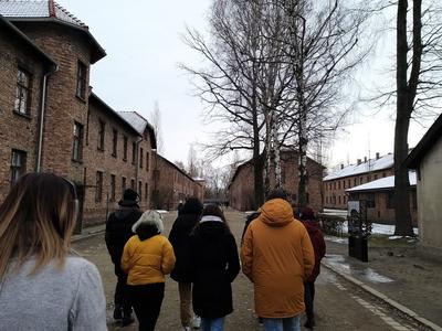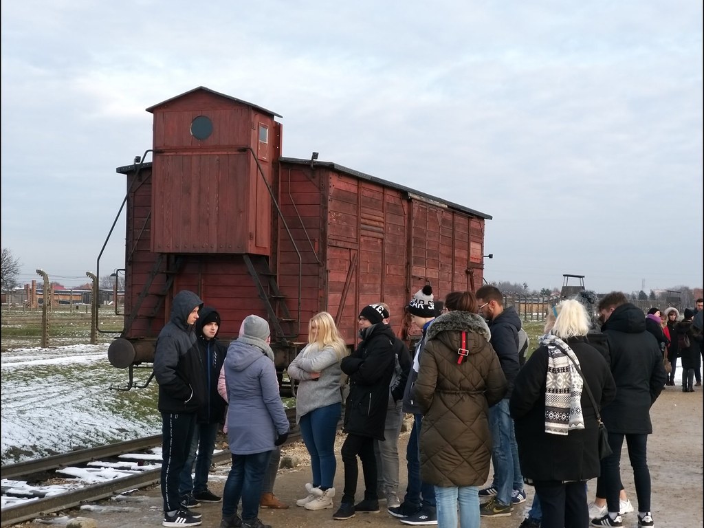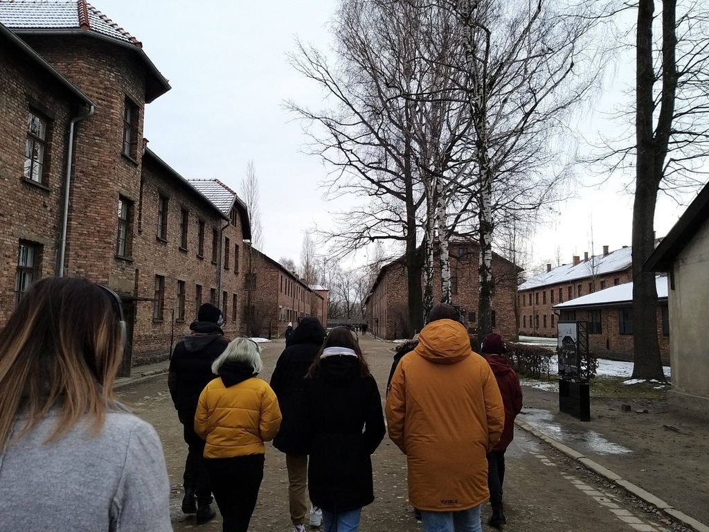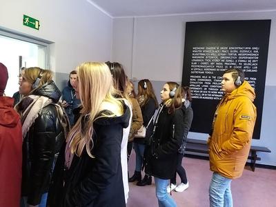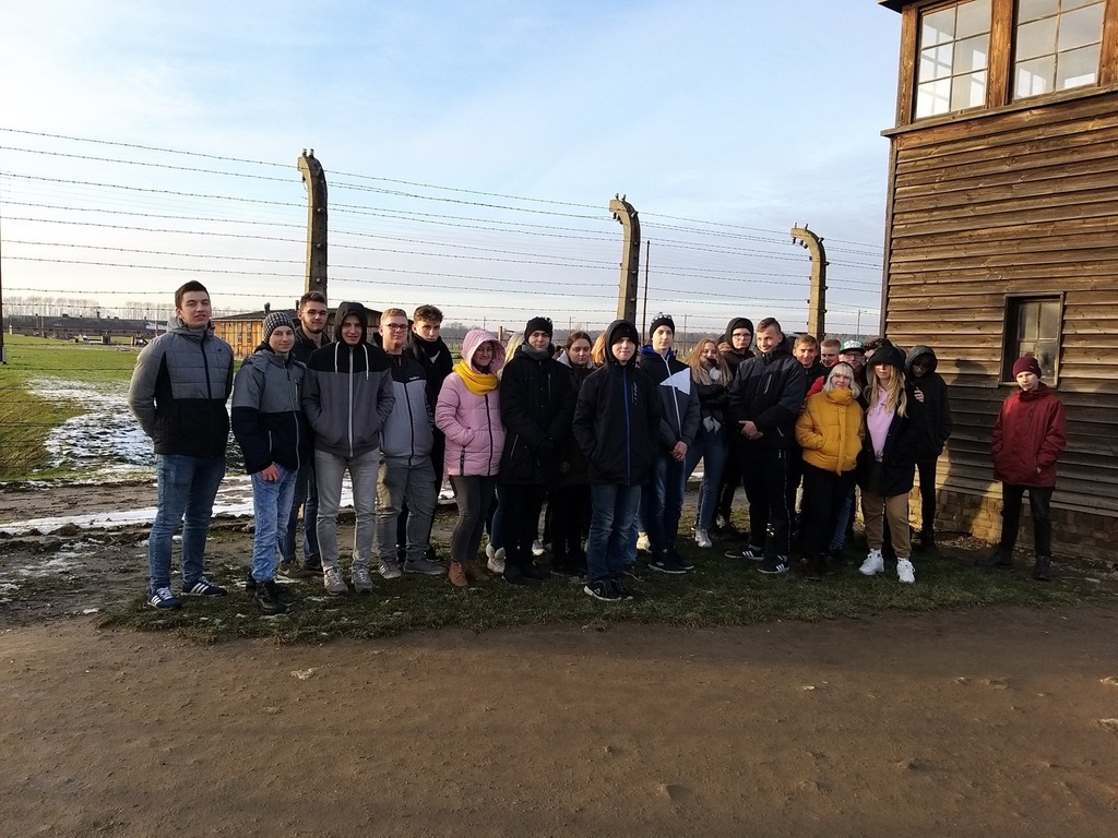 W dniu 4 grudnia 2019 roku wybraliśmy się na wycieczkę do obozu zagłady Auschwitz-Birkenau w Oświęcimiu. Na początku zwiedzania, uczniowie otrzymali słuchawki, dzięki którym doskonale słyszeli przewodnika, który wprowadził nas w przerażającą historię terroru i ludobójstwa. Zobaczyliśmy na własne oczy największy hitlerowski obóz koncentracyjny, w którym zostało zamordowanych ponad milion ludzi. Po przejściu przez bramę udaliśmy się do kilku budynków, w których można było zobaczyć i uświadomić sobie, co tak naprawdę działo się w Auschwitz. To była realistyczna i poruszająca lekcja historii. Puste cele, krematoria, komory gazowe, fotografie na ścianach czy bloki z osobistymi rzeczami więźniów to tylko część przerażającego obrazu obozu. Bloki w muzeum uczniowie zwiedzali w ciszy i zadumie, a swój pobyt w obozie upamiętnili minutą ciszy przy ścianie straceń. Wycieczka do Oświęcimia to z pewnością jedna z najbardziej działających na nasze emocje wycieczek, która na długo pozostanie w naszej pamięci.