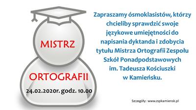 MIĘDZYSZKOLNE DYKTANDO - MISTRZ ORTOGRAFII Zdjęcia Załączniki regulamin_dyktanda.pdf [255.63 kB] Zobacz również TURNIEJ W PIŁKĘ HALOWĄ SPOTKANIE Z DORADCĄ ZAWODOWYM! DZIEŃ DRESA! MIĘDZYSZKOLNE DYKTANDO - MISTRZ ORTOGRAFII WYCIECZKA NA LODOWISKO! SZKOLNY TURNIEJ TENISA STOŁOWEGO 07 lutego 2020 Aktualności Wydrukuj Udostępnij Wyświetlono: 755
