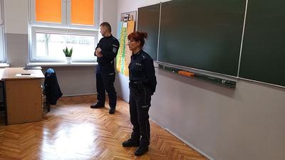 Funkcjonariuszom serdecznie dziękujemy za przeprowadzenie pogadanki, która z pewnością podniosła świadomość prawną uczniów.