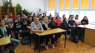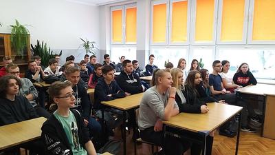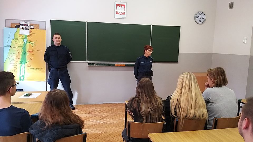 W ramach działań w zakresie realizacji Programu Wychowawczo- Profilaktycznego naszej szkoły odbyła się prelekcja z zakresu odpowiedzialności prawnej nieletnich w świetle prawa z uczniami klas pierwszych. Spotkanie przeprowadzili: sierż. szt. Agnieszka Kropisz z Komendy Powiatowej Policji w Radomsku oraz st. sierż. szt. Rafał Rudnicki z Komisariatu Policji w Kamieńsku. Uczniowie dowiedzieli się, kto to jest osoba nieletnia, poznali pojęcie czynu karalnego, demoralizacji oraz najczęstsze zachowania, które mogą być powodem konfliktu z prawem.