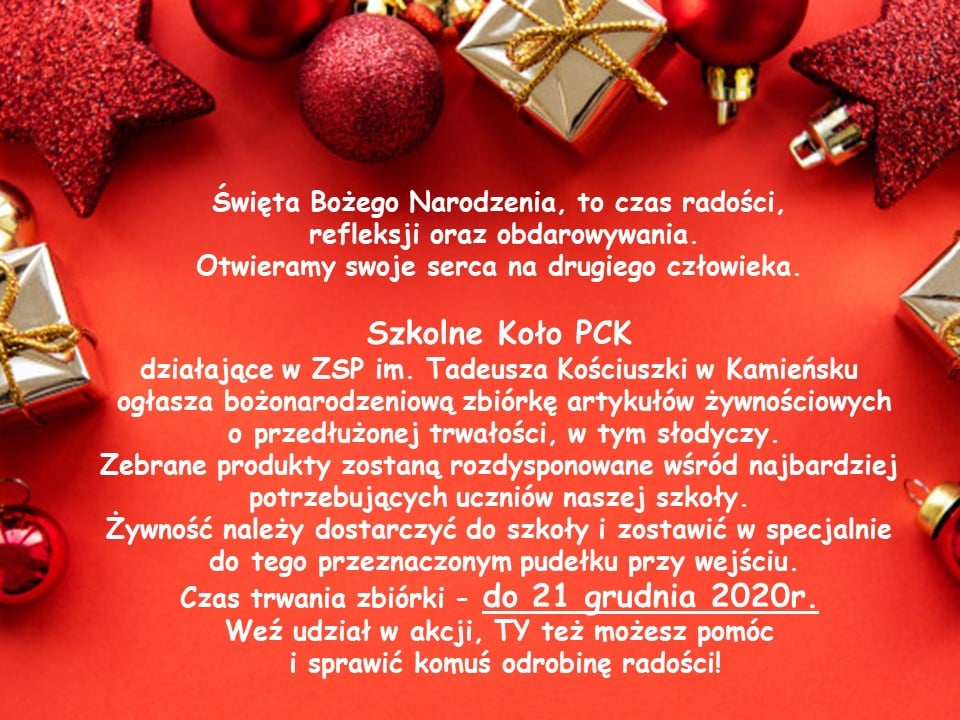 AKCJA CHARYTATYWNA!!! 🎄🎄🎄 Zdjęcia Zobacz również ŚLUBOWANIE KLAS PIERWSZYCH 😊😊😊 PRÓBNY ALARM EWAKUACYJNY!!! 🚨🚨🚨 NAUKA W FORMIE ZDALNEJ OD 24.10.2020 DO 08.11.2020 AKCJA CHARYTATYWNA!!! 🎄🎄🎄 KONKURS SZKOLNY pod patronatem MEN - Razem na... NAJPIĘKNIEJSZA KARTA BOŻONARODZENIOWA - KONKURS... 08 grudnia 2020 Aktualności Wydrukuj Udostępnij Wyświetlono: 427