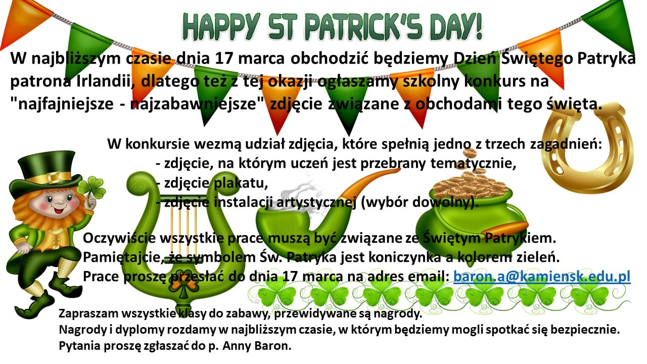 Konkurs z okazji Dnia Świętego Patryka🍀🍀🍀🍀 Zdjęcia Zobacz również Modernizacja sali przedmiotów zawodowych 🔨🔧🔨🔧 Narodowy Dzień Pamięci "Żołnierzy Wyklętych" 8 marca - Dzień Kobiet 🌷🌸🌷🌸 Konkurs z okazji Dnia Świętego Patryka🍀🍀🍀🍀 Kwiecień Światowym Miesiącem Autyzmu 16 rocznica śmierci św. Jana Pawła II - pamiętamy!!! 12 marca 2021 Aktualności Wydrukuj Udostępnij Wyświetlono: 289