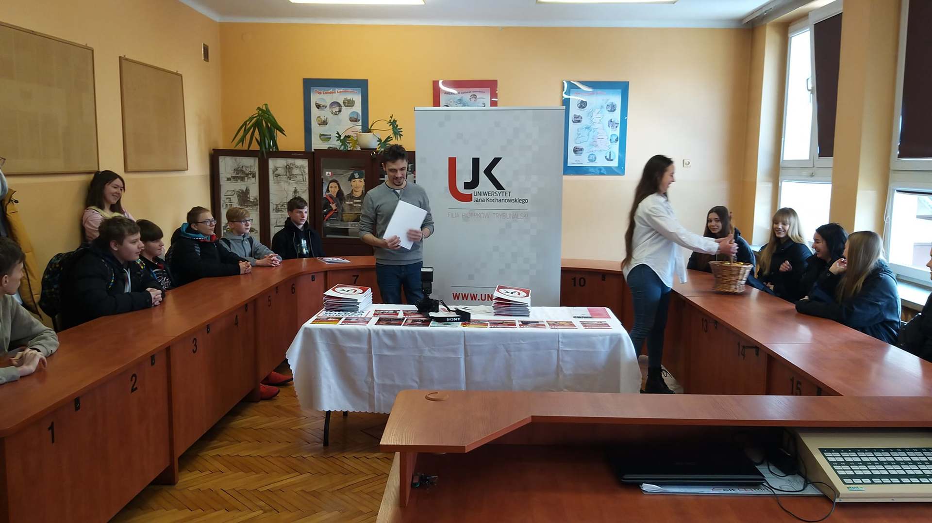 W dniu 04.04.2022r. w Zespole Szkół Ponadpodstawowych im. Tadeusza Kościuszki w Kamieńsku odbył się pełen wrażeń Dzień Otwarty Szkoły 2022, w czasie którego ósmoklasiści szkół podstawowych z: Kamieńska, Gorzędowa, Gomunic, Chrzanowic, Radomska i Piotrkowa Trybunalskiego oraz ich opiekunowie, mieli okazję zapoznać się z ofertą edukacyjną szkoły oraz poznać jej bazę dydaktyczną. Młodzież mogła obejrzeć pracownie zawodowe oraz pracownie kształcenia ogólnego. Wśród licznych atrakcji były: pokaz psów służbowych Komendy Powiatowej Policji w Radomsku przy współpracy z Komisariatem Policji w Kamieńsku, pokaz pierwszej pomocy i sprzętu strażackiego Ochotniczej Straży Pożarnej w Kamieńsku, pokaz sprzętu wojskowego Jednostki Strzeleckiej 1031 z Piotrkowa Trybunalskiego, oferta Filii Uniwersytetu Jana Kochanowskiego z Piotrkowa Trybunalskiego, quad i paintball zorganizowany przez Jura Park Biskupice, strzelanie na strzelnicy szkolnej, grill, grochówka oraz słodki poczęstunek. Uczniowie klas mundurowych przygotowali dla ósmoklasistów pokaz musztry, pokaz sztuk walki, samoobrony oraz sprawnościowy tor przeszkód.