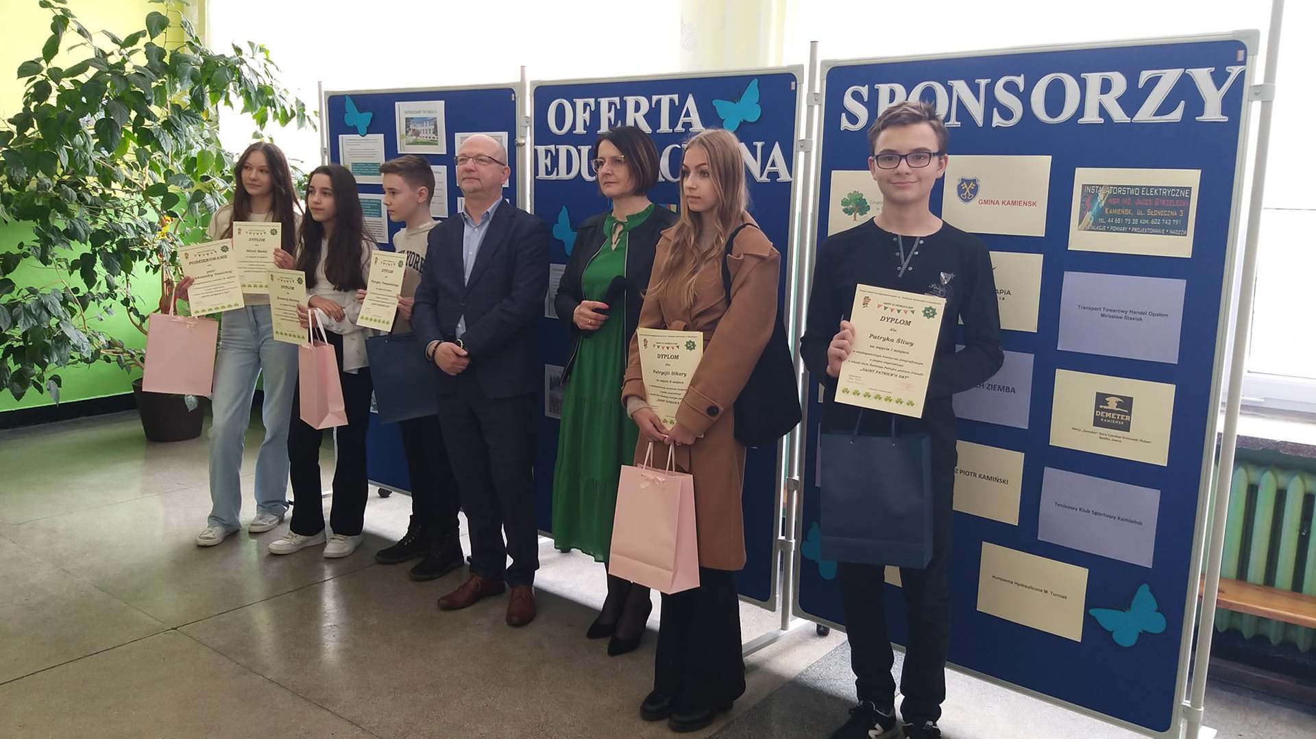 Na zakończenie odbyło się oficjalne wręczenie nagród i dyplomów laureatom szkolnych i międzyszkolnych konkursów, które wręczali Dyrektor Szkoły Ewa Ziółkowska i Burmistrz Kamieńska Bogdan Pawłowski. Realizacja Dnia Otwartego była możliwa dzięki licznym sponsorom, którzy wsparli szkołę zarówno finansowo jak i rzeczowo.