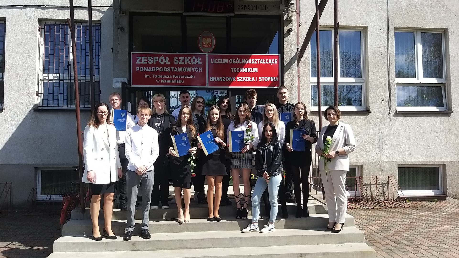W dniu 29 kwietnia 2022 r. odbyła się uroczysta akademia z okazji zakończenia roku szkolnego w klasie maturalnej. W uroczystości uczestniczyli zaproszeni goście: Burmistrz Kamieńska p. Bogdan Pawłowski, Przewodnicząca Rady Rodziców p. Małgorzata Jureńczyk, Rodzice, Grono Pedagogiczne oraz uczniowie klas młodszych. Dyrektor szkoły p. Ewa Ziółkowska złożyła gratulacje uczniom, życzyła powodzenia na egzaminach maturalnych, wręczyła uczniom nagrody za najlepsze wyniki w nauce oraz listy gratulacyjne dla rodziców. Przedstawiciele uczniów klas maturalnych złożyli podziękowania za trud, wsparcie i życzliwe słowo wszystkim nauczycielom oraz pracownikom szkoły. Następnie odbyła się część artystyczna, przygotowana przez młodszych kolegów i koleżanki. Na koniec przedstawiciel wszystkich uczniów wręczył absolwentom pożegnalne upominki. Był to szczególny dzień dla naszych tegorocznych maturzystów, mamy nadzieję, że zapadnie on długo w ich pamięci.