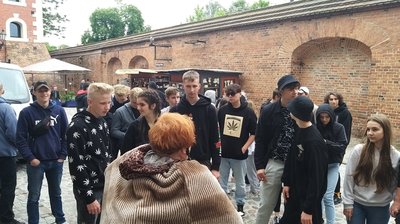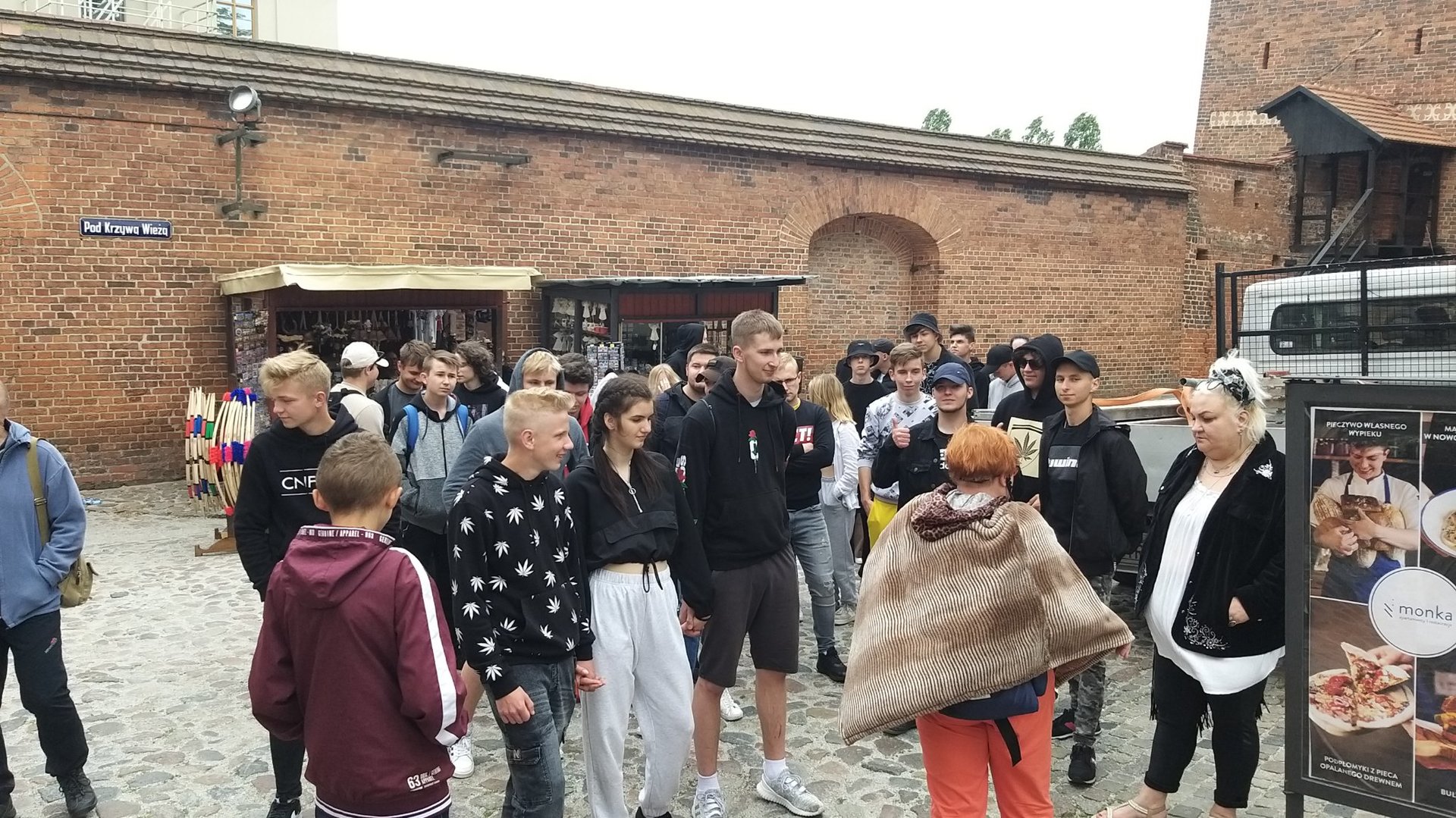 Zwiedzanie Torunia rozpoczęliśmy od wizyty na Starym Mieście, które znajduje się na Światowej Liście Dziedzictwa Kultury UNESCO. Uczniowie zobaczyli pomnik Mikołaja Kopernika, Krzywą Wieżę oraz Dom Mikołaja Kopernika. Kolejnym punktem wycieczki była wizyta w Muzeum Toruńskiego Piernika. Uczniowie mieli okazję zobaczyć, jak to dawniej wypiekano pierniki. Największą atrakcję wzbudził nocleg na Zamku Krzyżackim w Golubiu – Dobrzyniu. Zwiedziliśmy zamek oraz piękny dziedziniec otoczony drewnianym krużgankiem łączącym cztery skrzydła. Wychodząc z Zamku Golubskiego, wyszliśmy na platformę widokową, z której obejrzeliśmy piękny widok na miasto.