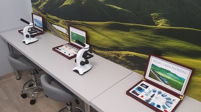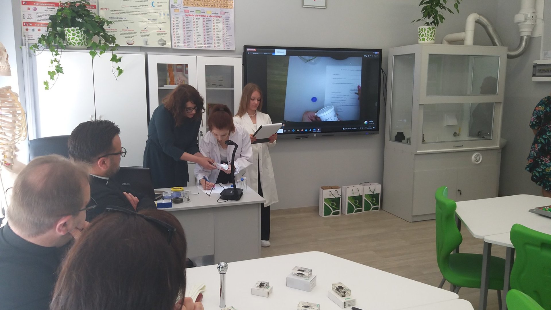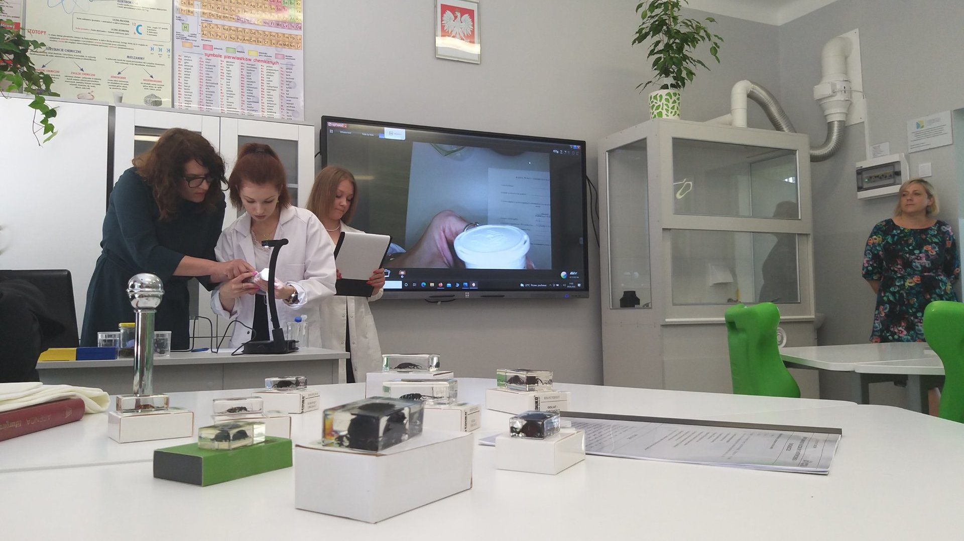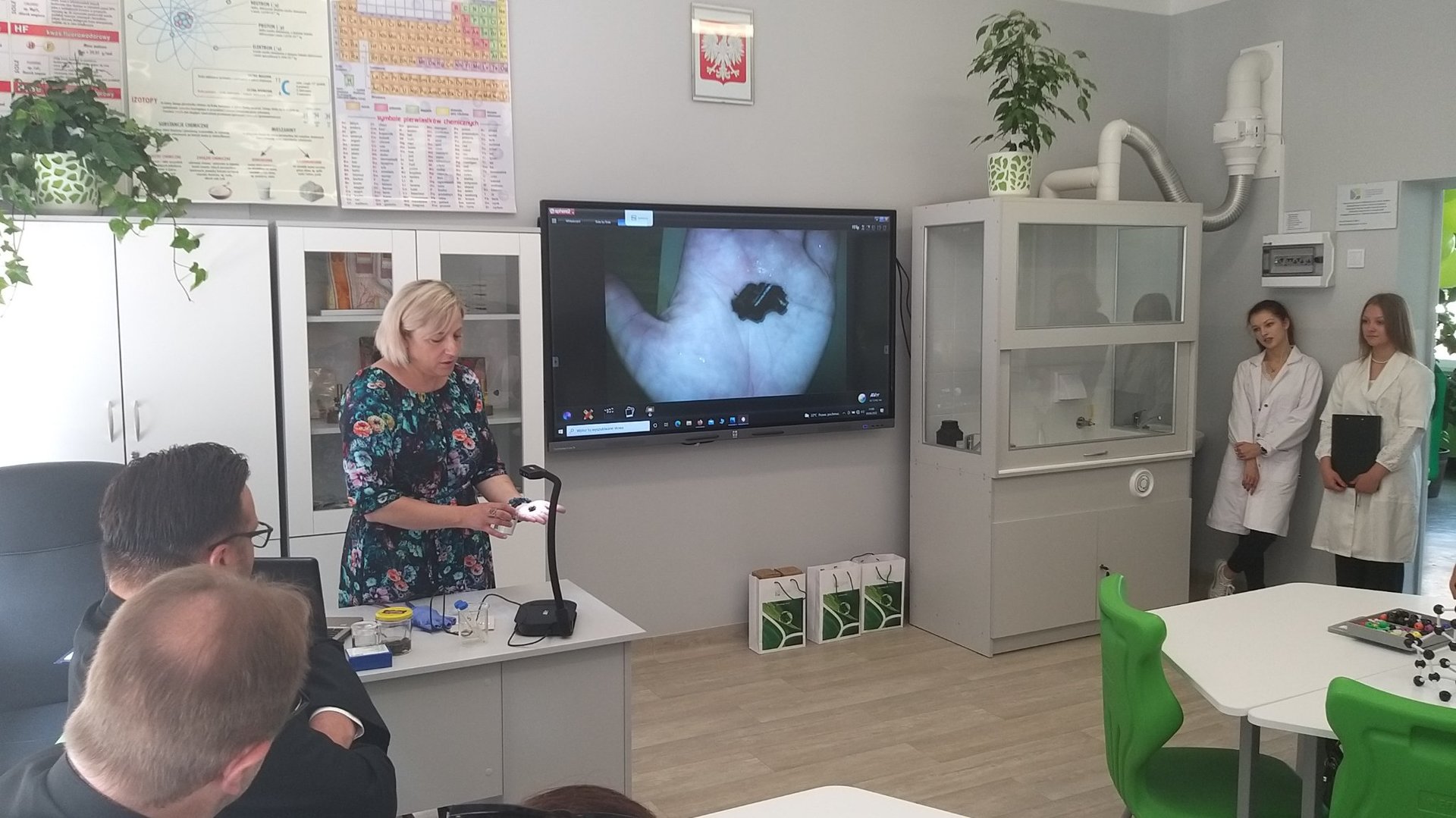 dygestorium, sprzęt i szkło laboratoryjne oraz odczynniki, oprzyrządowanie optyczne do obserwacji – mikroskopy i lupy, sprzęt multimedialny, multimedialne programy, gry edukacyjne, krzesła i stoliki uczniowskie, szafki i półki na pomoce dydaktyczne, plansze, mapy, preparaty mikroskopowe, zestawy badawcze, rośliny doniczkowe i wiele wiele innych pomocy dydaktycznych.