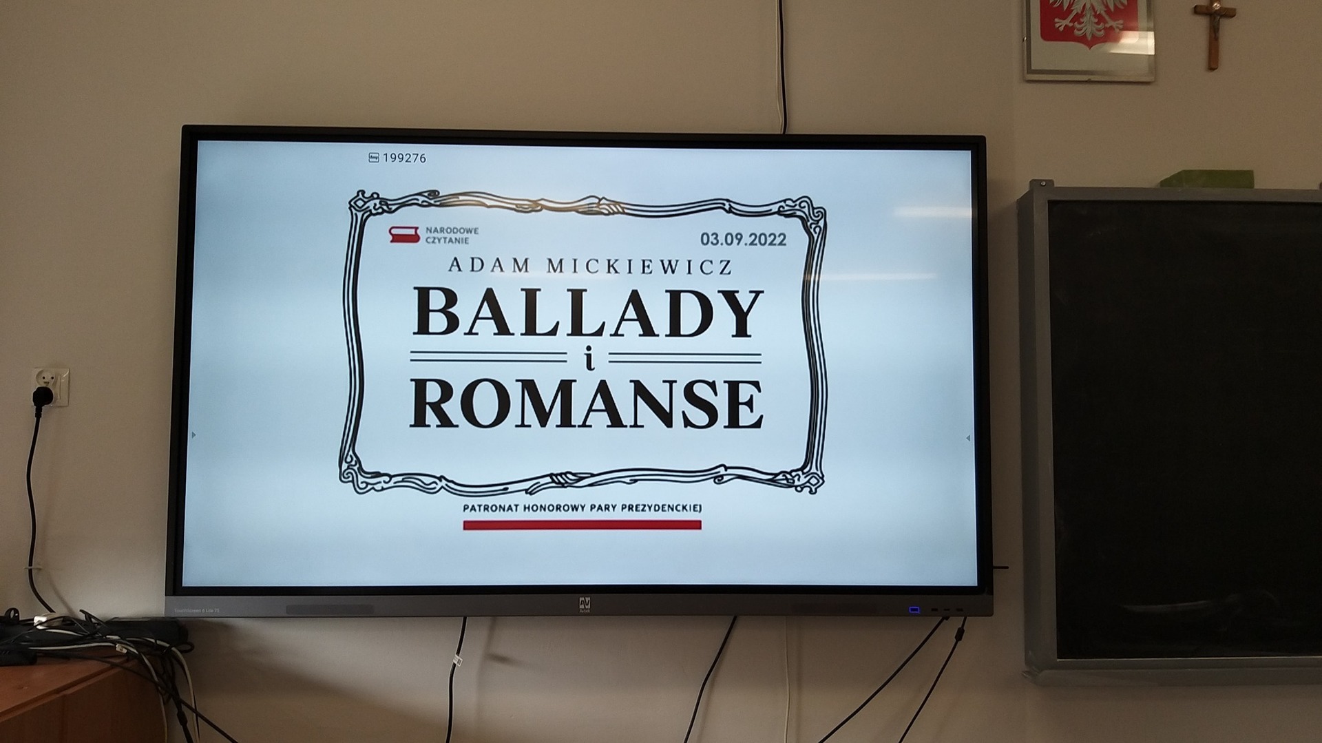 W dniu 29 września 2022 roku uczniowie klas pierwszych liceum i technikum wzięli udział w święcie polskiej literatury- Ogólnopolskim Głośnym Czytaniu połączonym z Narodowym Czytaniem. Ideą obu inicjatyw jest propagowanie czytelnictwa wśród młodzieży. Aby lepiej "wczuć się" w klimat czytanego tekstu lekcję rozpoczęło nagranie Pary Prezydenckiej, która przybliżyła treść „Ballad i romansów” Adama Mickiewicza. W tym roku przypada 200-setna rocznica wydania utworu, który rozpoczął epokę romantyzmu. Następnie uczniowie czytali kolejne fragmenty utworów wieszcza narodowego. Głośno czytaliśmy „Świteź”, „Powrót taty” i „ Lilie”. Te jakże proste w przekazie dzieła ukazują odwieczne prawdy moralne, którymi może kierować się współczesny czytelnik, czerpiąc wzory. Wszystkim uczniom biorącym udział w przedsięwzięciu, serdecznie dziękujemy i obiecujemy, że podjęte działania będą kontynuowane w kolejnych latach.