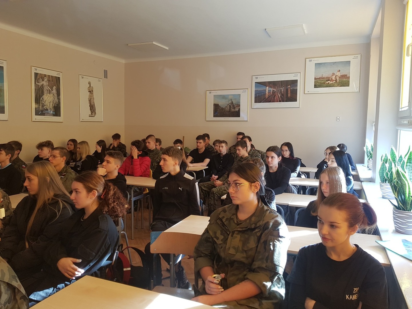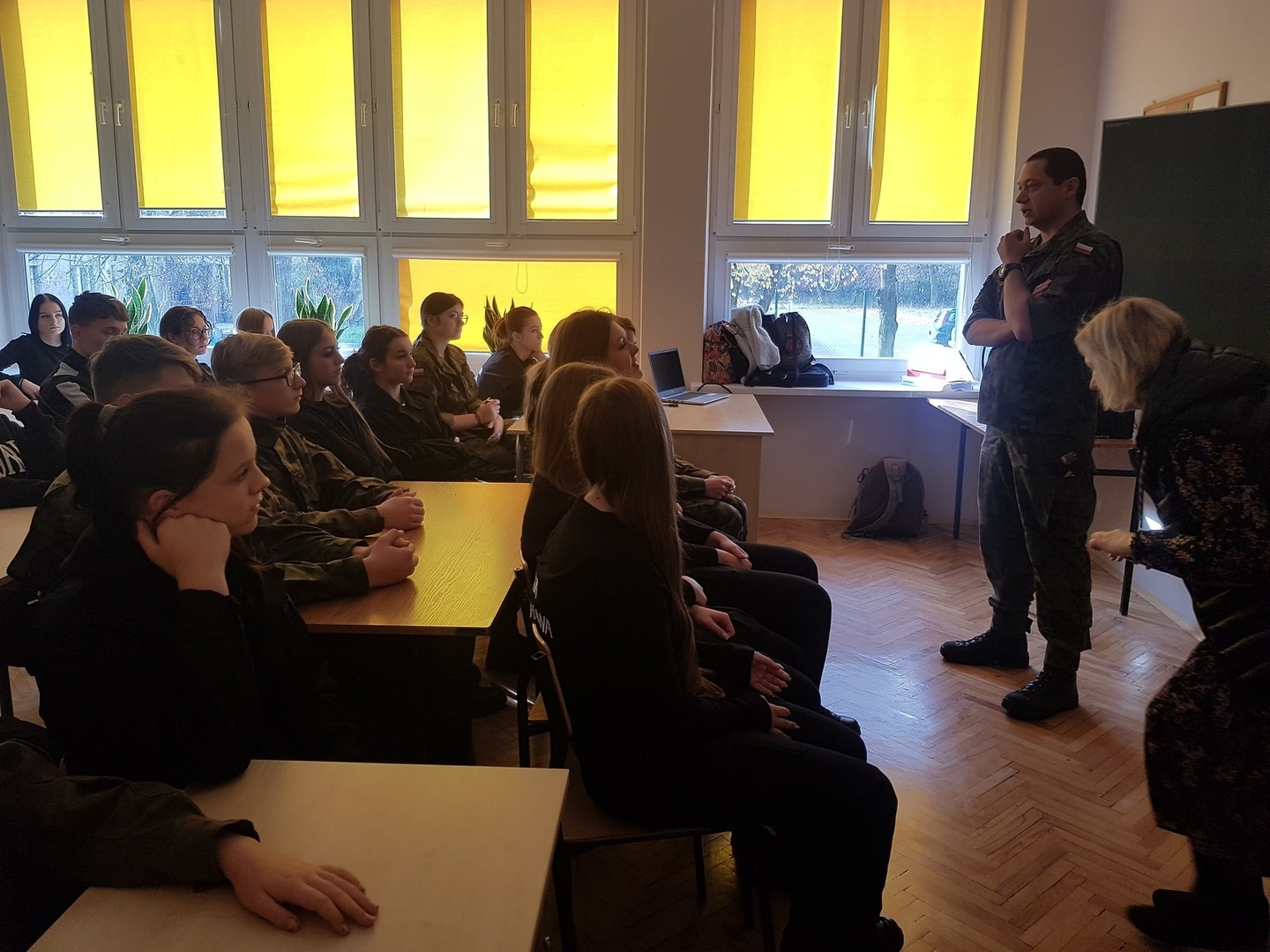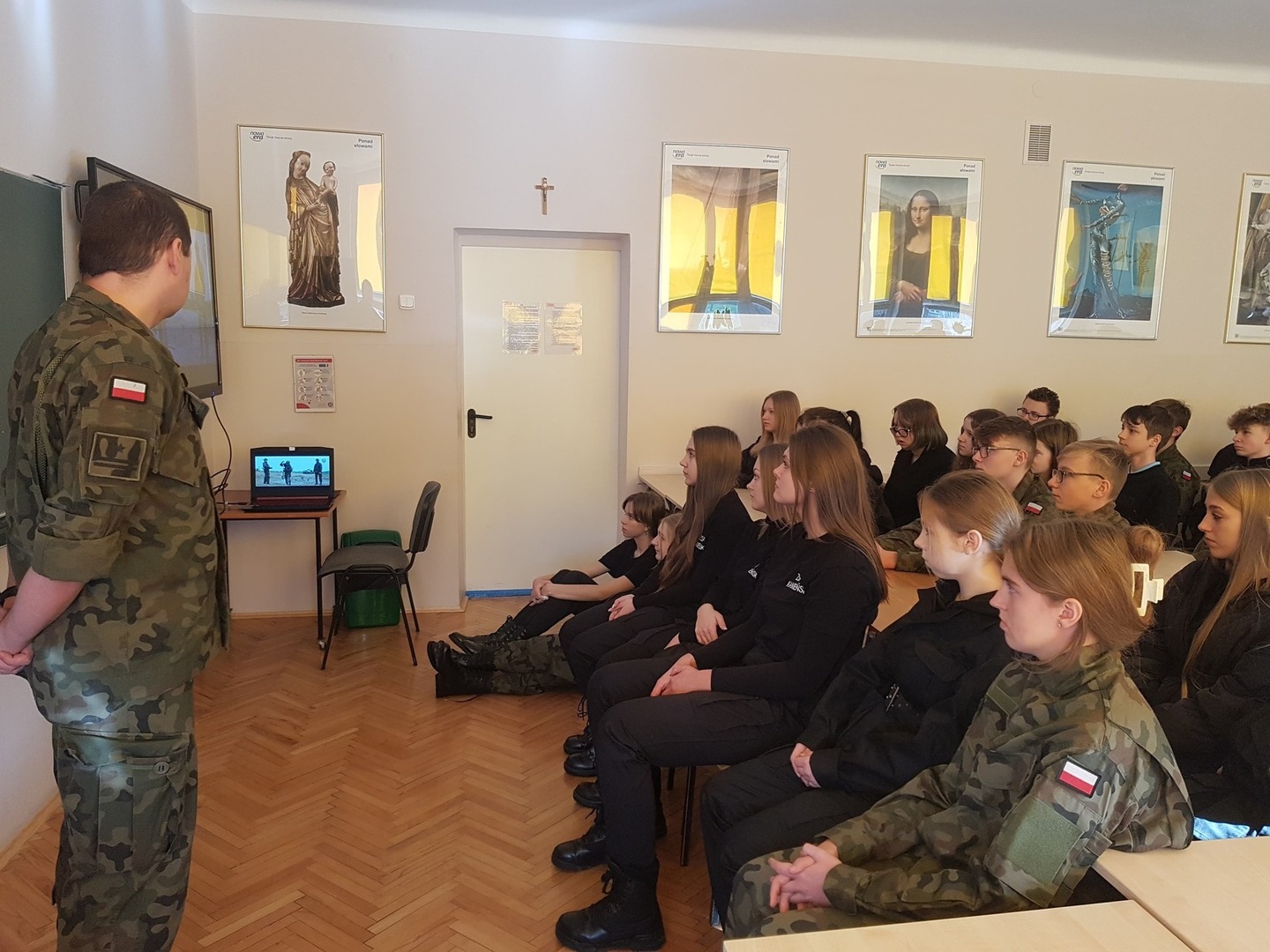 SPOTKANIE Z ŻOŁNIERZEM WOJSKA POLSKIEGO W dniu 21 października 2022r. klasy mundurowe wzięły udział w spotkaniu z Mjr Tomaszem Stasińskim żołnierzem Wojska Polskiego. Tematem spotkania była służba w różnych jednostkach i różnych specjalizacjach. Zdjęcia Zobacz również DZIEŃ EDUKACJI NARODOWEJ👩🏫🎓👨🏫🎓 KONKURS WIEDZY O AIDS 😊😊😊 POMOC DLA BEZDOMNYCH ZWIERZĄT 🐈🐕🐈🐕 SPOTKANIE Z ŻOŁNIERZEM WOJSKA POLSKIEGO MIĘDZYSZKOLNY RAJD PIECZONEGO ZIEMNIAKA 🥔🥔🥔🥔 POZNAJ POLSKĘ - WYCIECZKA DO SANDOMIERZA 😄🚌😄🚌😄 21 października 2022 Aktualności Wydrukuj Udostępnij Wyświetlono: 230