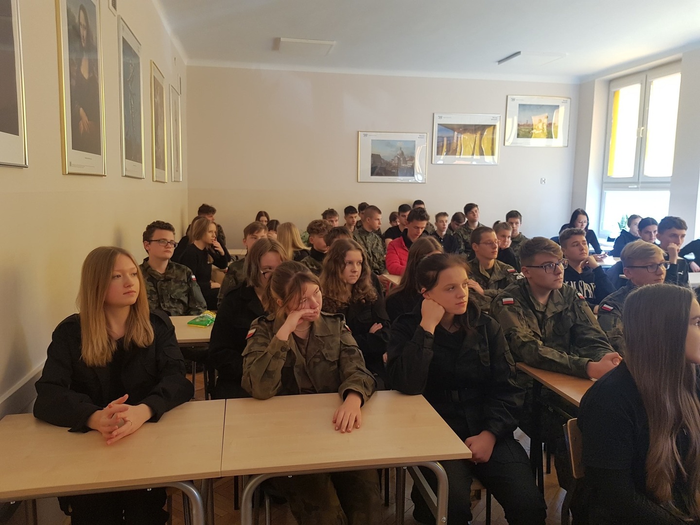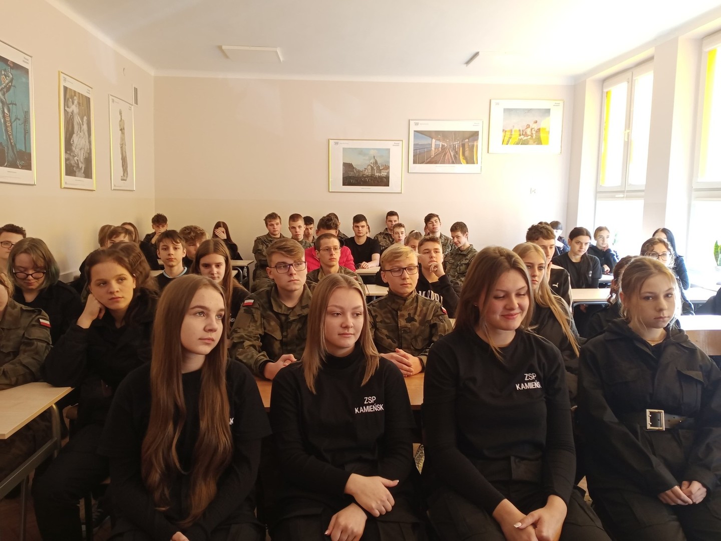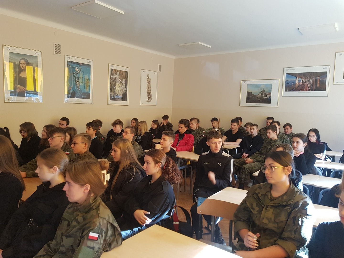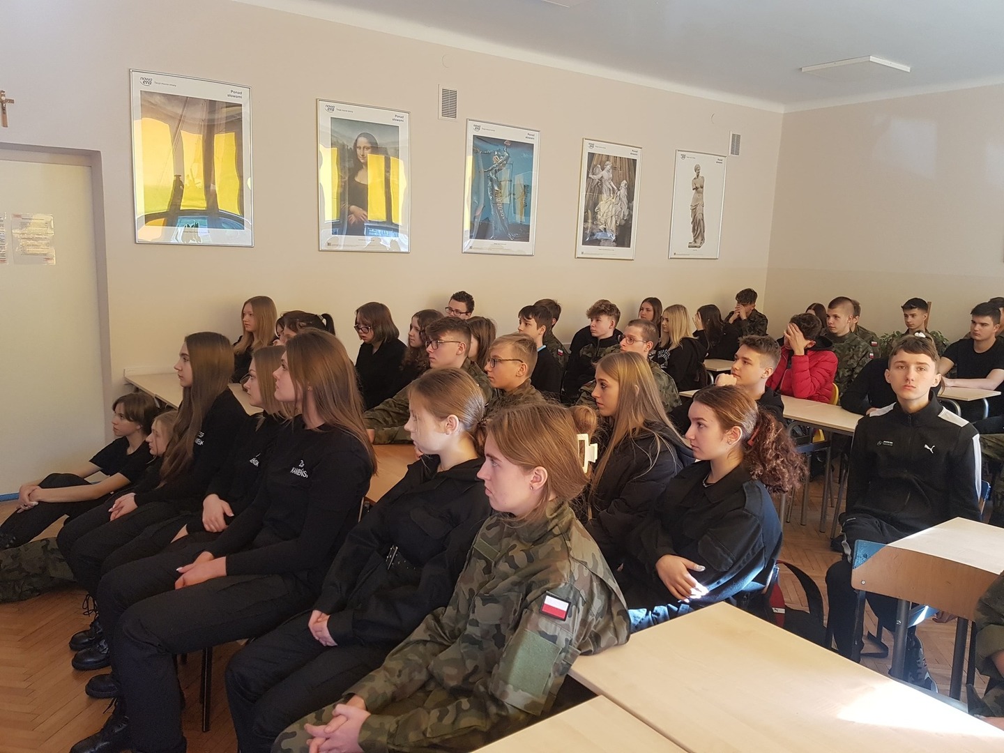 SPOTKANIE Z ŻOŁNIERZEM WOJSKA POLSKIEGO W dniu 21 października 2022r. klasy mundurowe wzięły udział w spotkaniu z Mjr Tomaszem Stasińskim żołnierzem Wojska Polskiego. Tematem spotkania była służba w różnych jednostkach i różnych specjalizacjach. Zdjęcia Zobacz również DZIEŃ EDUKACJI NARODOWEJ👩🏫🎓👨🏫🎓 KONKURS WIEDZY O AIDS 😊😊😊 POMOC DLA BEZDOMNYCH ZWIERZĄT 🐈🐕🐈🐕 SPOTKANIE Z ŻOŁNIERZEM WOJSKA POLSKIEGO MIĘDZYSZKOLNY RAJD PIECZONEGO ZIEMNIAKA 🥔🥔🥔🥔 POZNAJ POLSKĘ - WYCIECZKA DO SANDOMIERZA 😄🚌😄🚌😄 21 października 2022 Aktualności Wydrukuj Udostępnij Wyświetlono: 230
