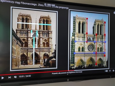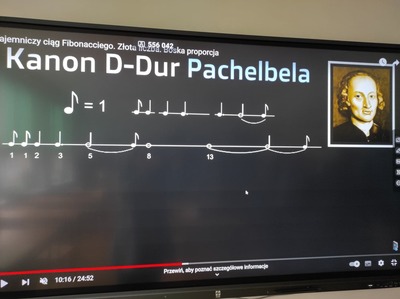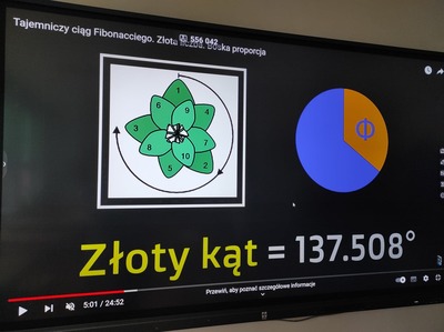 Podczas wykładu na lekcjach matematyki dowiedzieli się, że ciąg Fibonacciego to jedno z ciekawszych zagadnień matematycznych. Określa proporcje ciała ludzkiego, budowy kwiatów, ciał zwierząt, proporcje w architekturze, grafice, fotografii, typografii, malarstwie, muzyce, a nawet… na rynkach finansowych, w postaci strategii odbicia Fibonacciego oraz w tworzeniu nowoczesnych technologii.