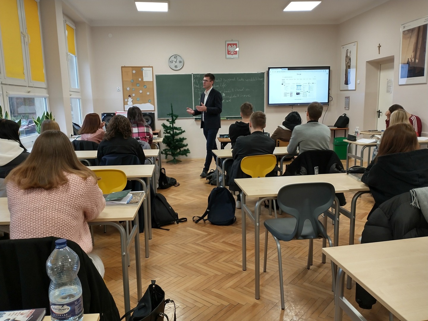 W dniu 5 grudnia br. odbyło się spotkanie uczniów klasy III LO z p. Michałem Sewerynkiem - Powiatowym Rzecznikiem Praw Konsumentów w Radomsku. Celem spotkania było poszerzenie wiedzy na temat praw konsumenckich i obowiązków spoczywających na sprzedawcy. Uczniowie dowiedzieli się na co powinni zwrócić uwagę podczas zakupów, m.in. na odległość przez Internet, jak złożyć reklamację oraz jak egzekwować swoje prawa.