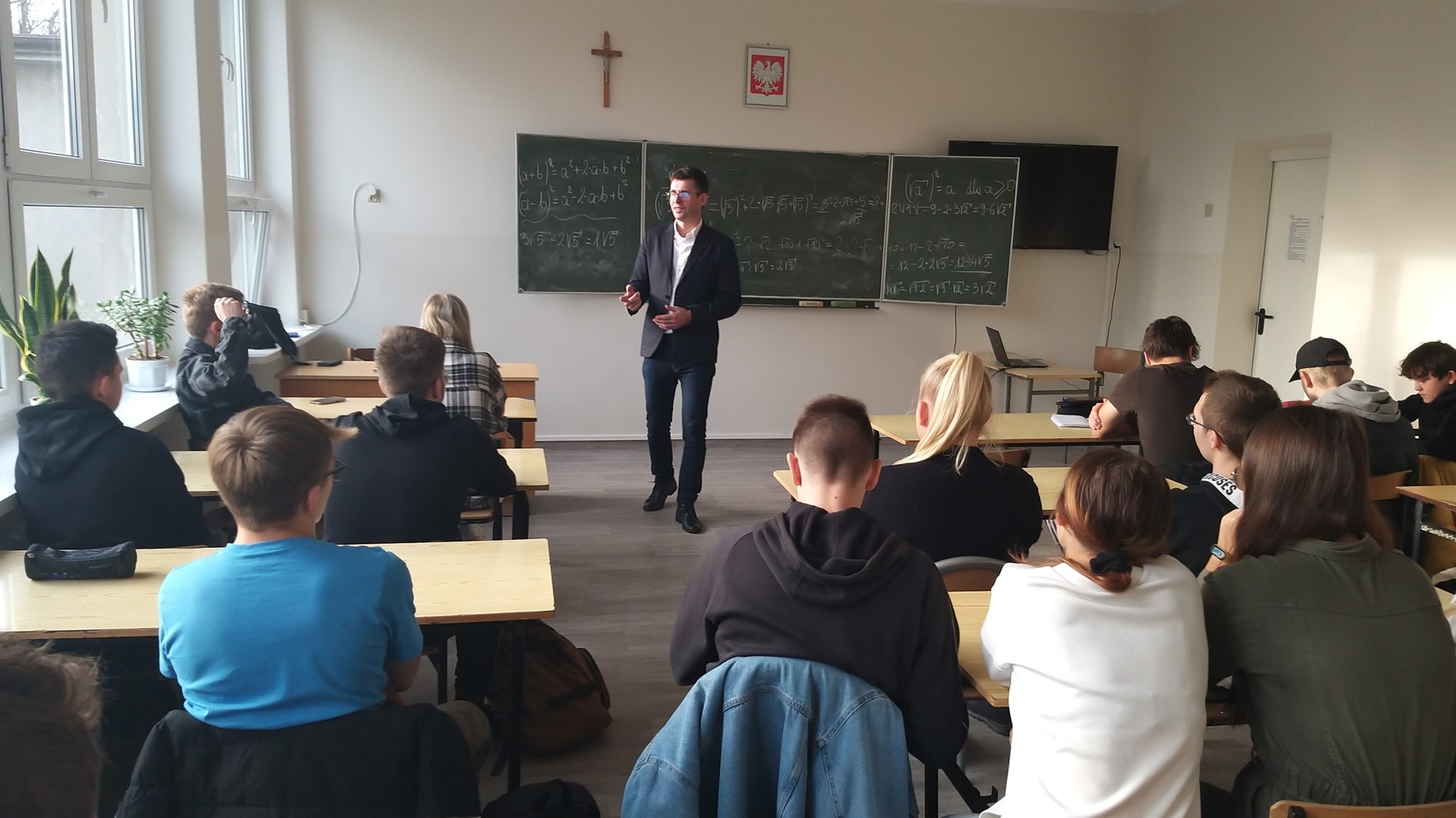 W dniu 8 grudnia br. odbyło się spotkanie uczniów klas: IV LO i I T z p. Michałem Sewerynkiem - Powiatowym Rzecznikiem Praw Konsumentów w Radomsku. Młodzież dowiedziała się o prawach konsumenckich, obowiązkach sprzedawcy, jak bronić się przed nieuczciwymi praktykami w handlu, a także na co zwrócić uwagę podczas zakupów, m.in. na odległość przez Internet, jak złożyć reklamację oraz jak egzekwować swoje prawa.
