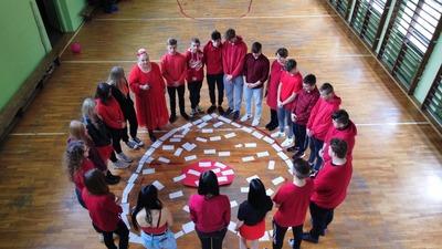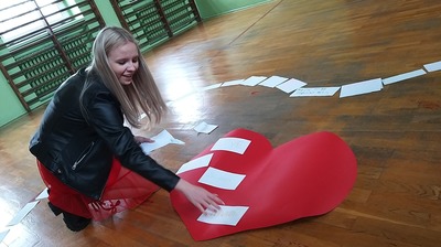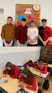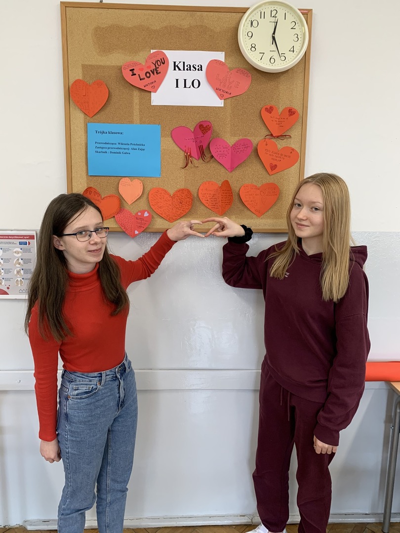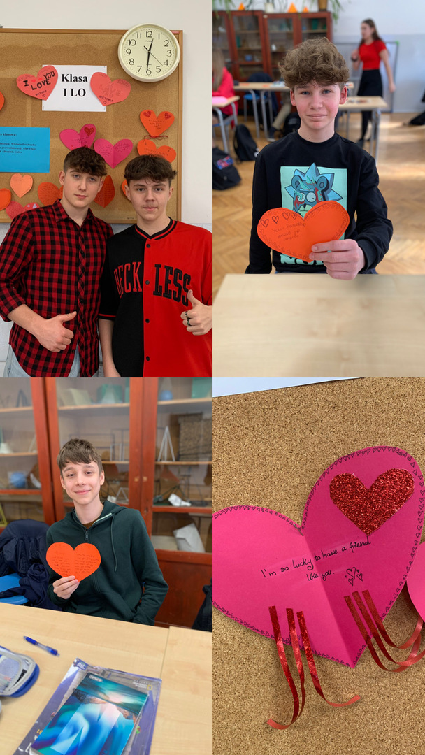 Na całym świecie 14 lutego to wyjątkowy dzień, walentynki to nie tylko święto zakochanych, ale również doskonała okazja do okazania sympatii i ciepłych uczuć tym wszystkim, których lubimy i szanujemy. Tego dnia w naszej szkole dominował kolor czerwony – symbol miłości! Na papierowych kartkach uczniowie napisali, czym dla nich jest miłość i ułożyli symboliczny kształt serca. Uczniowie, którzy byli ubrani na czerwono, uzyskali dodatkowe „np.” z wybranego przez siebie przedmiotu. Ponadto rozdane zostały walentynki, które przez ostatni tydzień można było przekazać za pomocą specjalnie zorganizowanej poczty walentynkowej. A na lekcji języka angielskiego uczniowie klasy I LO stworzyli piękne "Kartki Walentynkowe do Przyjaciela". Każda okazja do zabawy i rozwijania umiejętności językowych jest dobra!