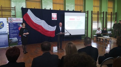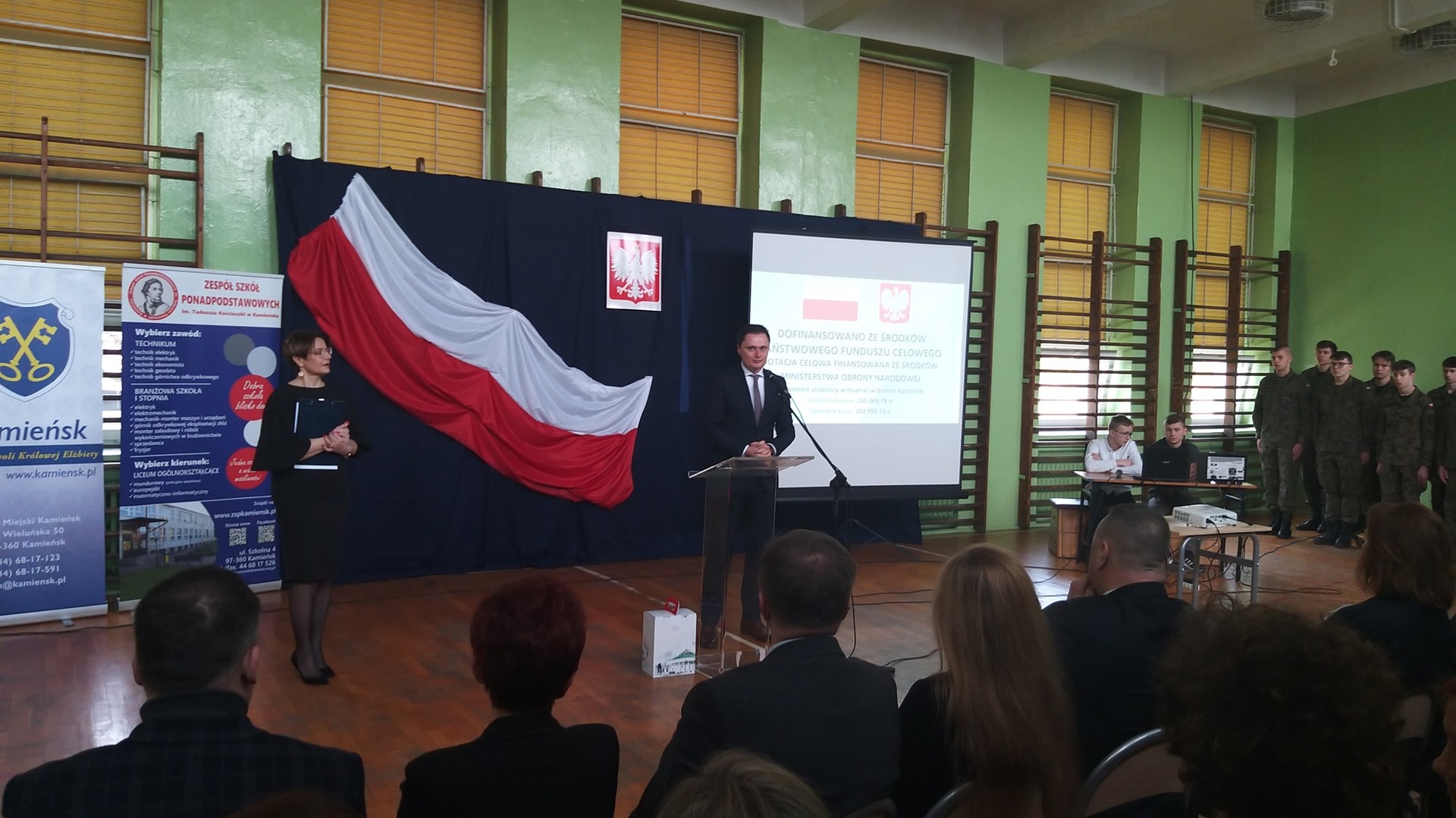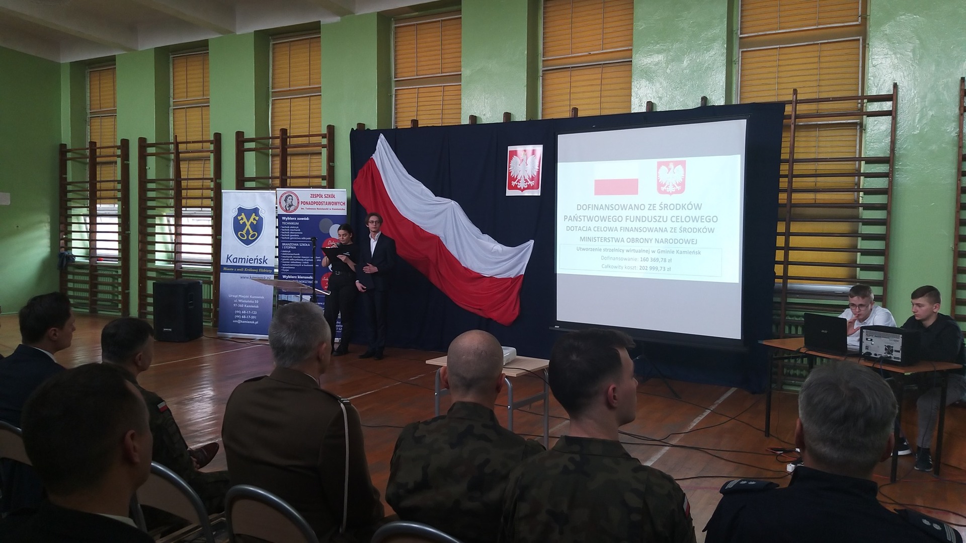 W dniu 23 lutego 2023r. odbyło się uroczyste otwarcie wirtualnej strzelnicy w naszej szkole, która jest efektem zgłoszenia się Gminy Kamieńsk do konkursu „Strzelnica w powiecie 2022”, ogłoszonego przez Ministerstwo Obrony Narodowej Centralne Wojskowe Centrum Rekrutacji. Wirtualna strzelnica powstała dzięki dofinansowaniu ze środków państwowego funduszu celowego Ministerstwa Obrony Narodowej oraz wkładzie własnym gminy. Wysokość udzielonej dotacji to 160.369,78 zł, przy całkowitych kosztach realizacji w wysokości 202.299, 73 zł. Wkład własny gminy wyniósł 41.929,95zł.