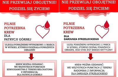POTRZEBNA POMOC DLA PATRYCJI i DARIUSZA - LOKALNA ZBIÓRKA KRWI 🩸🩸🩸