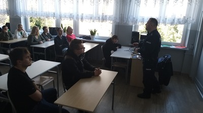 W dniu 17 marca br., odbyło się spotkanie uczniów klas maturalnych z asp. Dariuszem Trepką -funkcjonariuszem Powiatowej Policji w Radomsku. Głównym celem spotkania było przedstawienie uczniom zasad rekrutacji do służby w Policji. Uczniowie zostali zapoznani z warunkami jakie musi spełniać kandydat, jakie etapy rekrutacji trzeba przejść i czego można spodziewać się u progu kariery zawodowej.