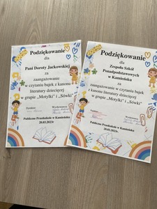 W dniu 20 marca br., uczennice naszej szkoły - Oliwia Skalik i Amelia Łakoma, wraz z opiekunem odwiedziły grupę "Motylków" i "Sówek". Celem spotkania była popularyzacja czytelnictwa wśród najmłodszych. Dzieci z uwagą i skupieniem wysłuchały bajek z kanonu literatury dziecięcej. Na zakończenie spotkania milusińscy otrzymali kolorowanki i słodki poczęstunek. Dziękujemy za miło spędzony czas. 🥰🥰🥰