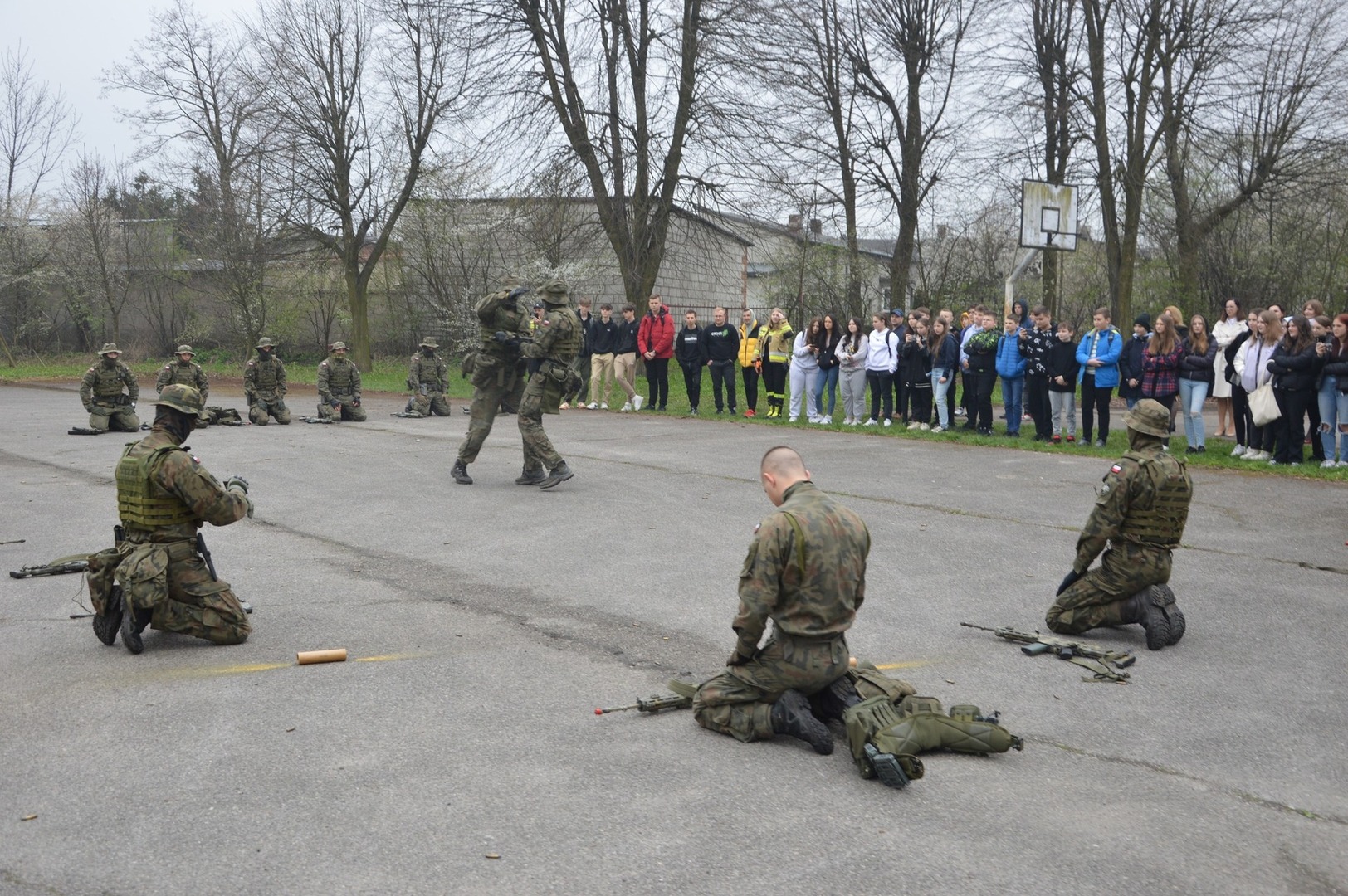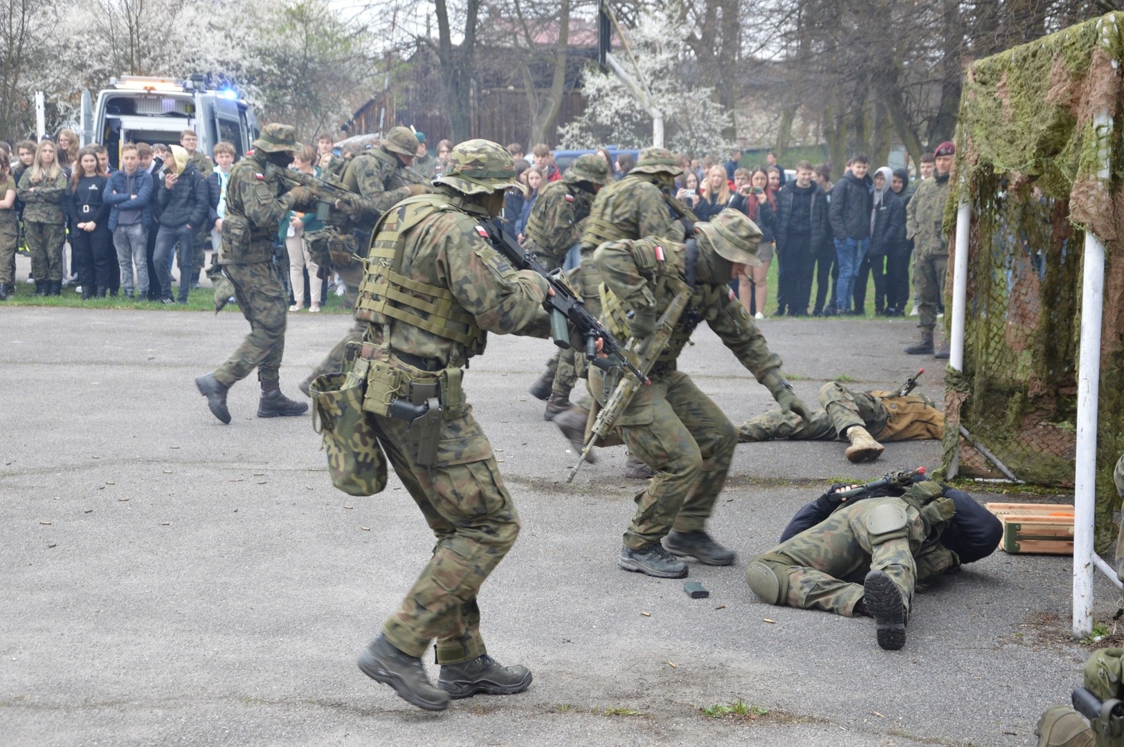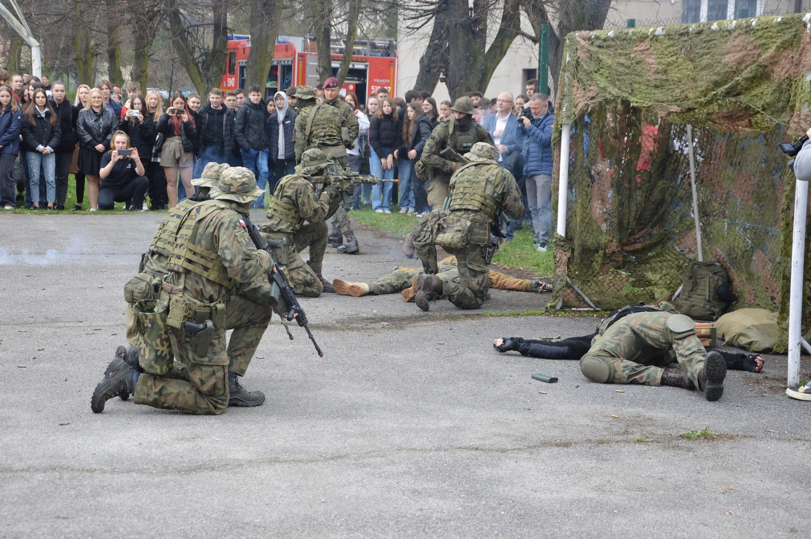 DZIEŃ OTWARTY SZKOŁY 2023 - POKAZ Pokaz w ramach Dnia Otwartego Szkoły - 25 Brygada Kawalerii Powietrznej z Tomaszowa Mazowieckiego (sytuacja taktyczna: zasadzka, pojmanie zakładnika, odbicie zakładnika, pokaz walki wręcz). 🤩🤩🤩 Zdjęcia Zobacz również OFERTA EDUKACYJNA SZKOŁY "COSINUS" AKCJA ŻONKILE 2023 DZIEŃ OTWARTY SZKOŁY 2023 🥳🥳🥳 DZIEŃ OTWARTY SZKOŁY 2023 - POKAZ DZIEŃ ZIEMI🌷🌼🌍🌺🌸💧🌿 DZIEŃ OTWARTY SZKOŁY – ROZSTRZYGNIĘCIE KONKURSÓW... 21 kwietnia 2023 Aktualności Wydrukuj Udostępnij Wyświetlono: 322