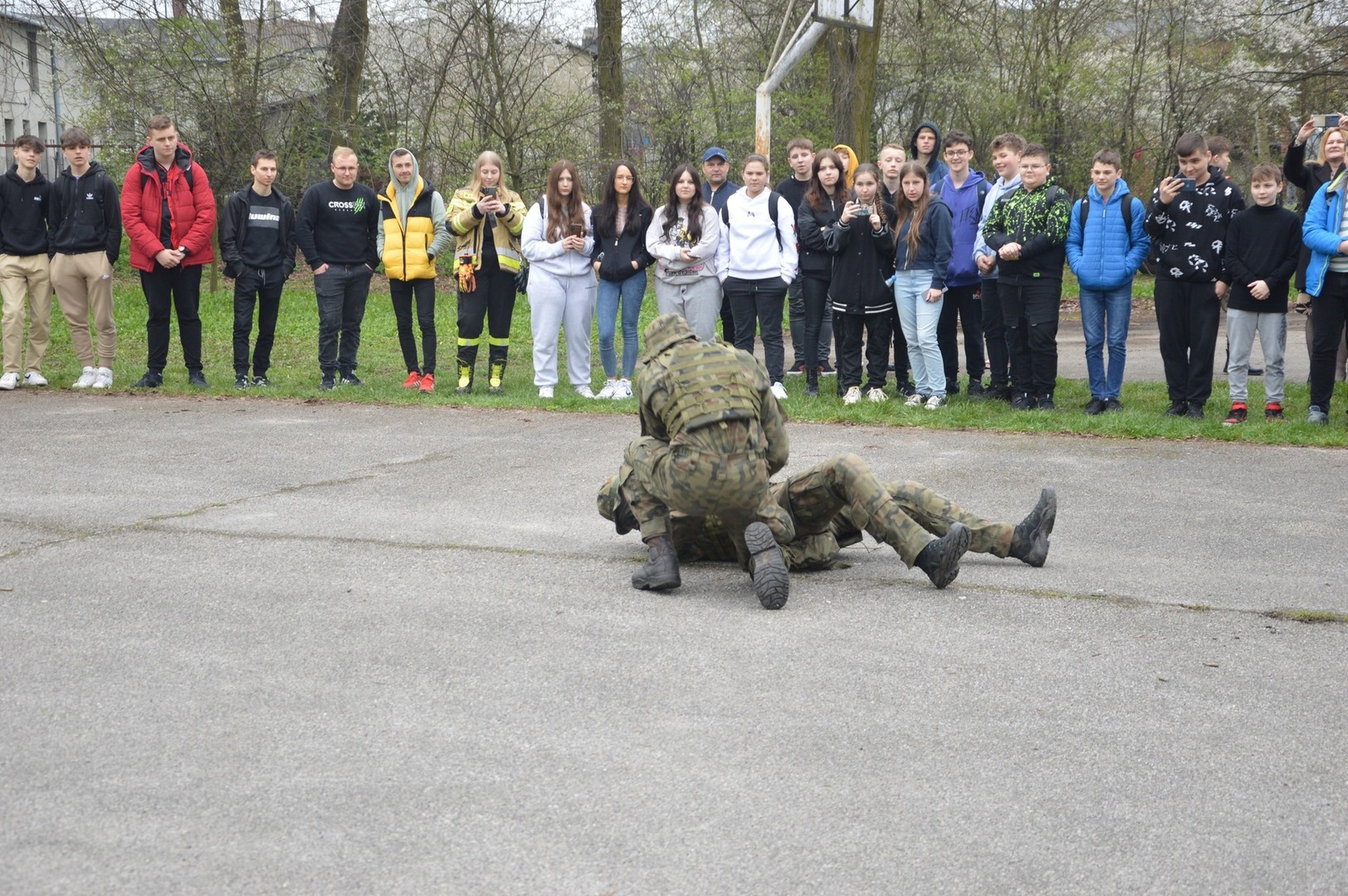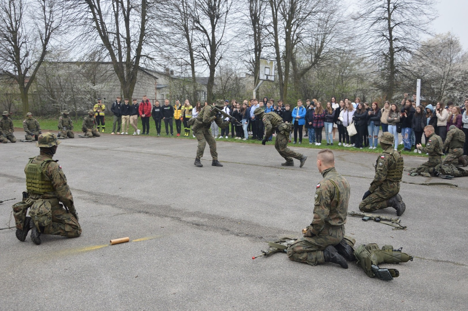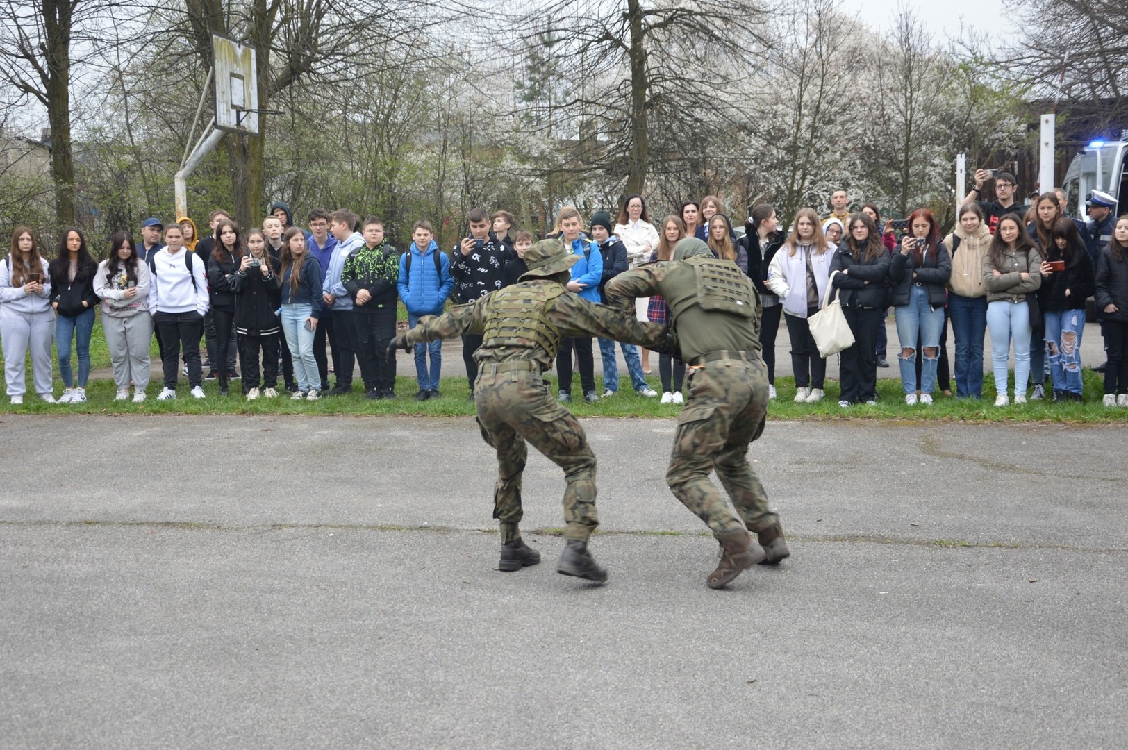 DZIEŃ OTWARTY SZKOŁY 2023 - POKAZ Pokaz w ramach Dnia Otwartego Szkoły - 25 Brygada Kawalerii Powietrznej z Tomaszowa Mazowieckiego (sytuacja taktyczna: zasadzka, pojmanie zakładnika, odbicie zakładnika, pokaz walki wręcz). 🤩🤩🤩 Zdjęcia Zobacz również OFERTA EDUKACYJNA SZKOŁY "COSINUS" AKCJA ŻONKILE 2023 DZIEŃ OTWARTY SZKOŁY 2023 🥳🥳🥳 DZIEŃ OTWARTY SZKOŁY 2023 - POKAZ DZIEŃ ZIEMI🌷🌼🌍🌺🌸💧🌿 DZIEŃ OTWARTY SZKOŁY – ROZSTRZYGNIĘCIE KONKURSÓW... 21 kwietnia 2023 Aktualności Wydrukuj Udostępnij Wyświetlono: 322