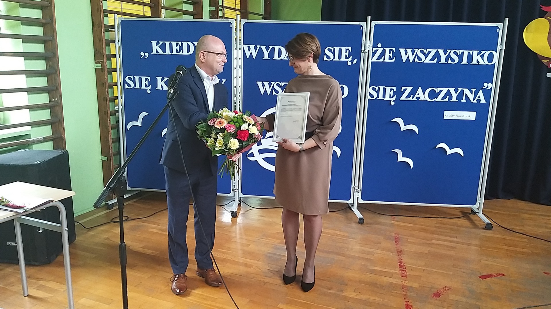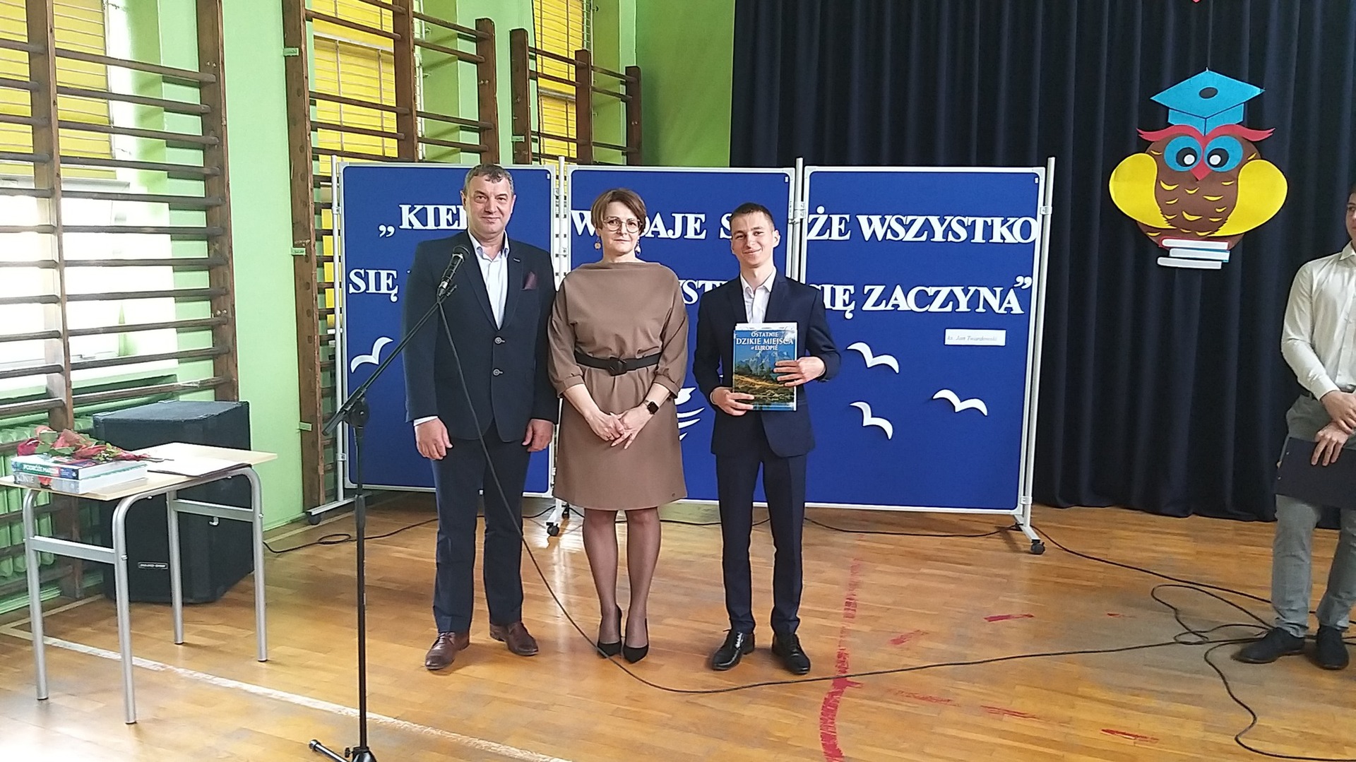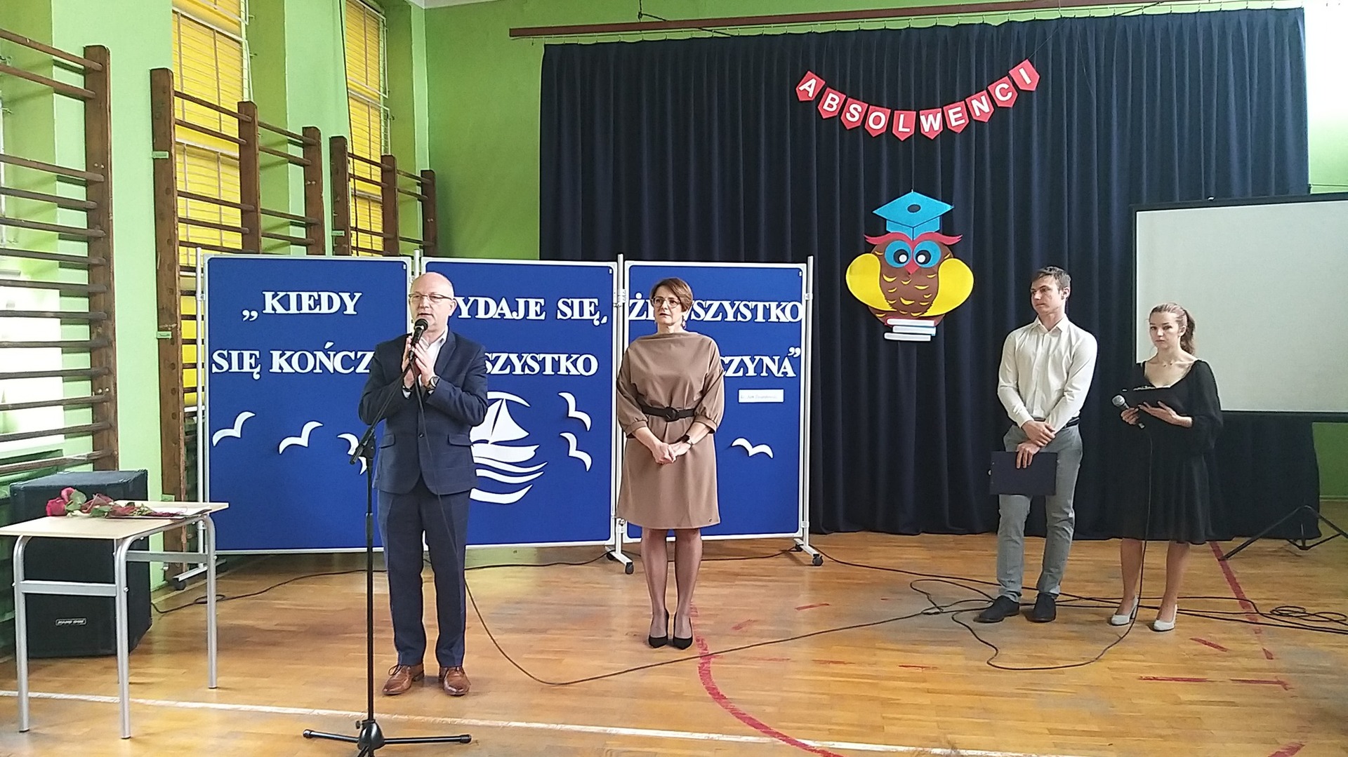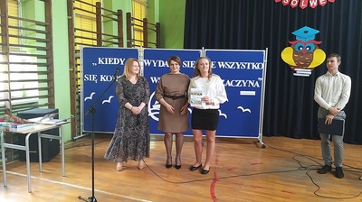 Dyrektor szkoły p. Ewa Ziółkowska złożyła gratulacje uczniom, życzyła powodzenia na egzaminach maturalnych, wręczyła uczniom nagrody za najlepsze wyniki w nauce oraz listy gratulacyjne dla rodziców. W tym dniu p. Bogdan Pawłowski – Burmistrz Kamieńska wręczył p. Ewie Ziółkowskiej oficjalną nominację na kolejną kadencję Dyrektora Szkoły Zespołu Szkół Ponadpodstawowych im. Tadeusza Kościuszki w Kamieńsku oraz przekazał nagrody najzdolniejszym uczniom za najwyższą średnią ocen na świadectwie. Następnie odbyła się część artystyczna, przygotowana przez młodszych kolegów i koleżanki. W ramach niespodzianki wszyscy mogli obejrzeć prezentację zdjęć z naszymi tegorocznymi maturzystami w roli głównej. Ponadto uczniowie klas młodszych wręczyli absolwentom pożegnalne upominki. Na koniec uczniowie klas maturalnych złożyli podziękowania za trud, wsparcie i życzliwe słowo wszystkim nauczycielom oraz pracownikom szkoły. Był to szczególny dzień dla naszych tegorocznych maturzystów, mamy nadzieję, że zapadnie on długo w ich pamięci.