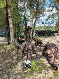 W dniach od 29 do 31 maja 2023 r. uczniowie klas mundurowych pod opieką p. B. Tkacz i p. M. Glejzer uczestniczyli w obozie szkoleniowym w Jura Park Biskupice. Zajęcia prowadzone przez instruktorów obejmowały szkolenie z zasad bezpiecznego posługiwania się bronią, celowania i postaw strzeleckich, strzelania z broni pneumatycznej, szkolenia z zakresu przygotowania wysokościowego, kolejka tyrolska, specjalistycznej pierwszej pomocy na polu walki, taktyki wojskowej przy wykorzystaniu sprzętu paintballowego, terenoznawstwa, podstawowych technik survivalu oraz doskonalenia techniki jazdy quadami. Serdecznie dziękujemy Jurapark Biskupice za przekazaną wiedzę, niesamowite przeżycia i wspaniałą atmosferę.