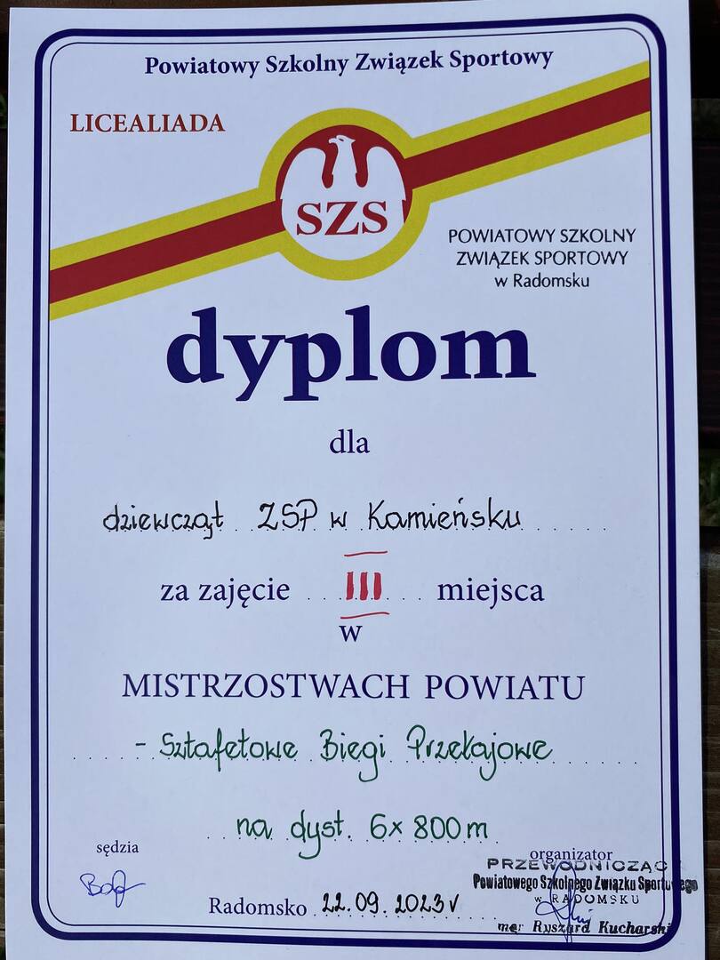 Kolejne zawody sportowe z kalendarza imprez sportowych powiatu radomszczańskiego to Sztafetowe Biegi Przełajowe. Zawody odbyły się 22.09.2023r. przy zbiorniku wodnym w miejscowości Wymysłówek. Reprezentacja dziewcząt naszej szkoły w składzie: Nicola Wawszczak, Natalia Siewier, Nikola Pawłowska, Kamila Migalska, Jagoda Jarzębska, Justyna Migalska i Agata Górna wywalczyła brązowy medal. Dzielnie spisali się też nasi chłopcy, którzy godnie reprezentowali naszą szkołę na arenie powiatu. Gratulujemy i życzymy dalszych sukcesów. 👏👏👏