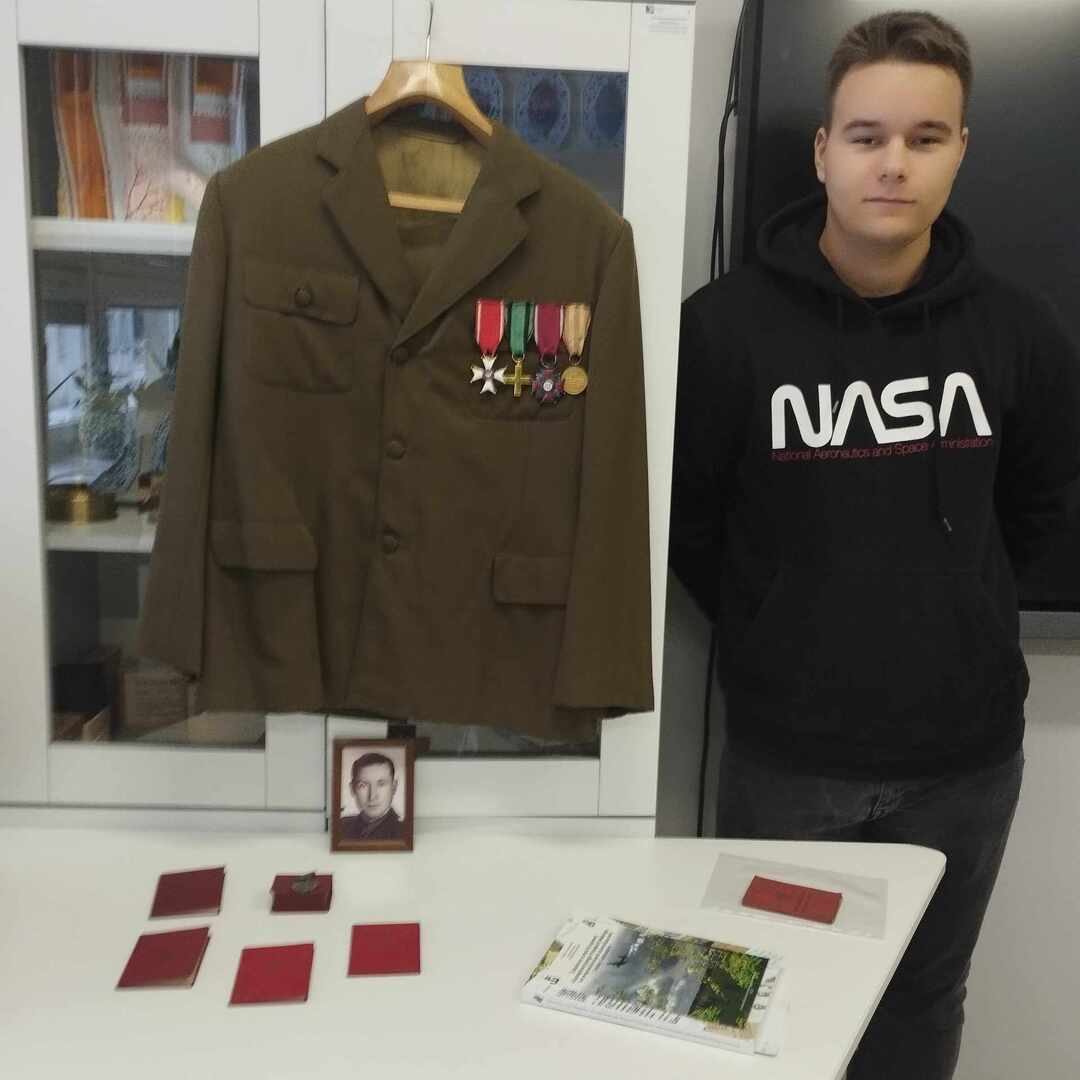 Dnia 29.11. 2023 r. na lekcji p. Z. Chabałowskiej w klasie IV LO odbyła się żywa lekcja historii. Nasz uczeń Adam Łuczak przygotowywał wspomnienia swego dziadka z okresu wojny. Dla lepszego zobrazowania treści przyniósł też mundur i odznaczenia, które dziadek otrzymał. Był to ciekawy sposób ukazania walki i patriotyzmu Polaków za wolną ojczyznę.