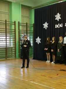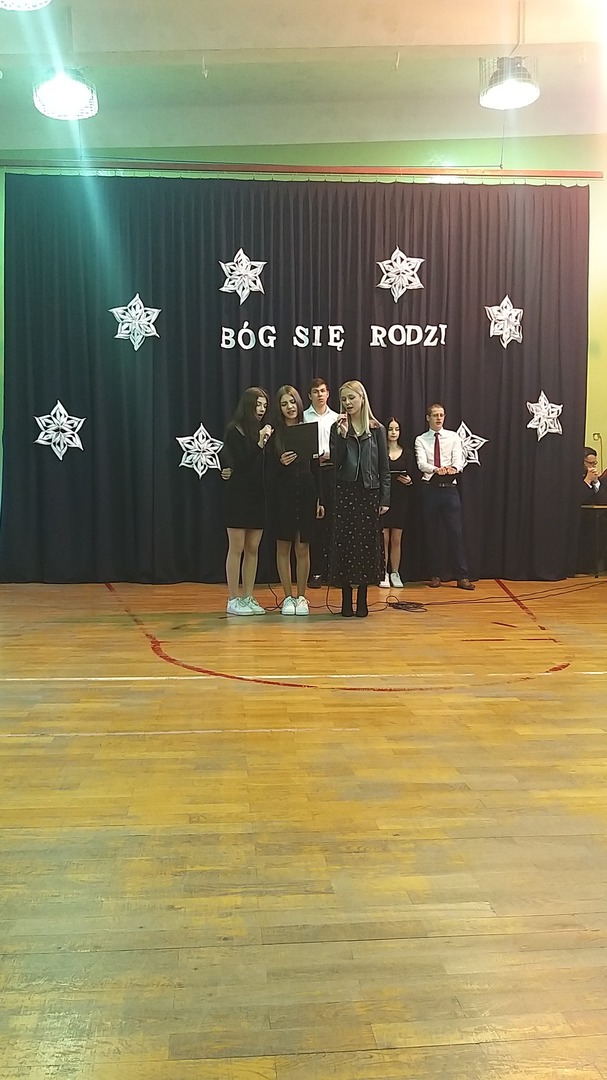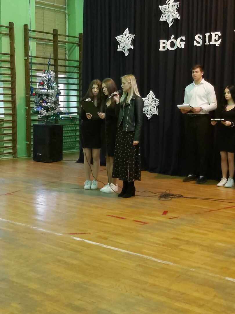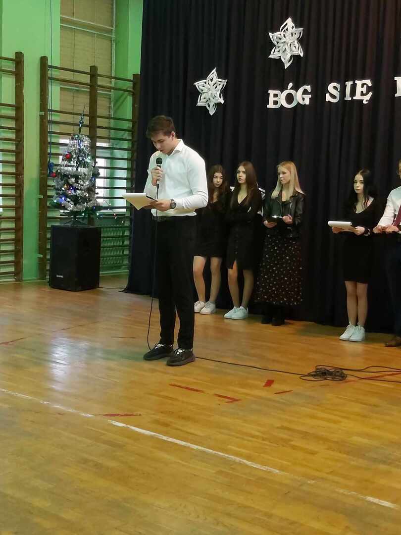 W dniu 21 grudnia br. w naszej szkole odbyła się akademia z okazji zbliżających się świąt Bożego Narodzenia oraz wigilie klasowe. Nasi uczniowie przypomnieli najważniejsze tradycje i zwyczaje oraz wiersze o tematyce świątecznej. Wszystko było przeplatane przepięknymi kolędami. Na zakończenie Pani Dyrektor Ewa Ziółkowska życzyła wszystkim zdrowych, radosnych i rodzinnych świąt Bożego Narodzenia. Po akademii odbyły się spotkania wigilijne w klasach, które upłynęły w bardzo miłej atmosferze.