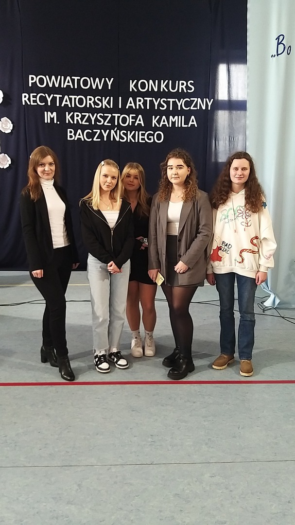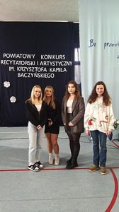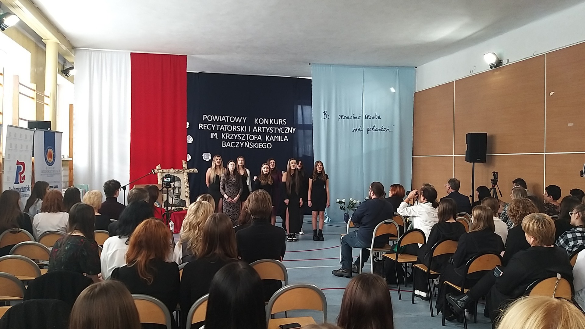 W dniu 19 stycznia 2024 r. odbyła się Gala Finałowa X Powiatowego Konkursu Recytatorskiego i Artystycznego im. K. K. Baczyńskiego „Bo przecież trzeba znów pokochać...” w II LO w Radomsku. W konkursie plastycznym udział wzięły uczennice naszej szkoły: Oliwia Skalik (klasa IV LO), Amelia Łakoma (klasa II LO), Nikola Próchnicka (klasa II LO), Marcelina Haupt (klasa I LO). Celem konkursu była popularyzacja poezji Krzysztofa Kamila Baczyńskiego oraz rozwijanie uzdolnień plastycznych i umiejętności recytatorskich wśród uczniów.