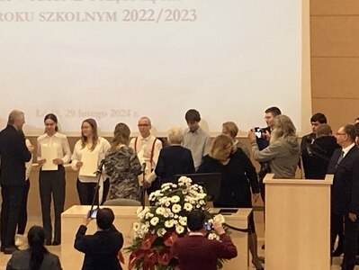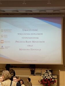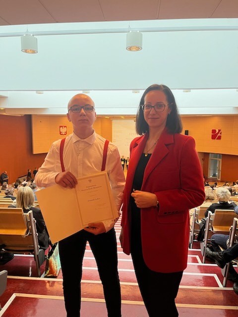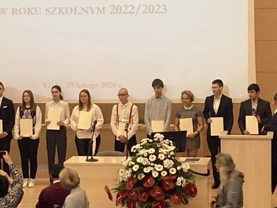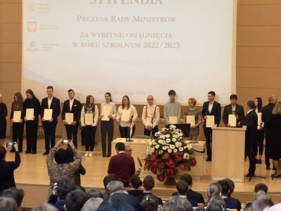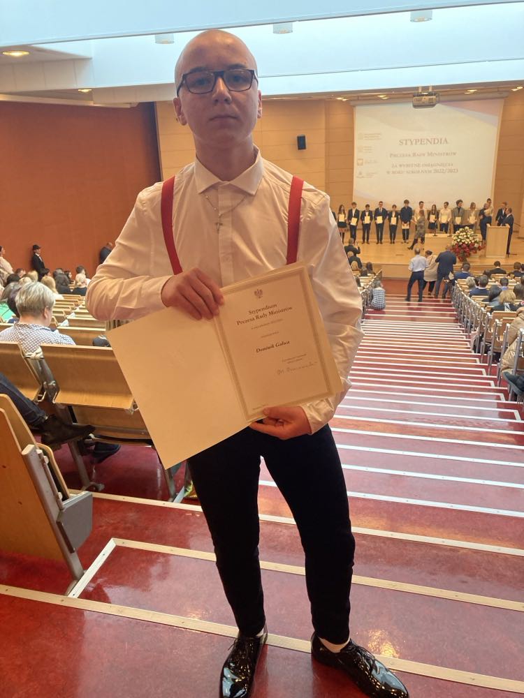 W dniu 29 lutego 2024 r. uczeń klasy II LO - Dominik Gałwa, odebrał stypendium Prezesa Rady Ministrów za najlepsze wyniki w nauce w roku szkolnym 2022/2023. Uroczystość odbyła się w Auli Czerwonej Wydziału Prawa i Administracji w Łodzi. Imprezę zaszczycili urzędnicy miasta i województwa łódzkiego. Gratulujemy i życzymy dalszych sukcesów! 👏👏👏
