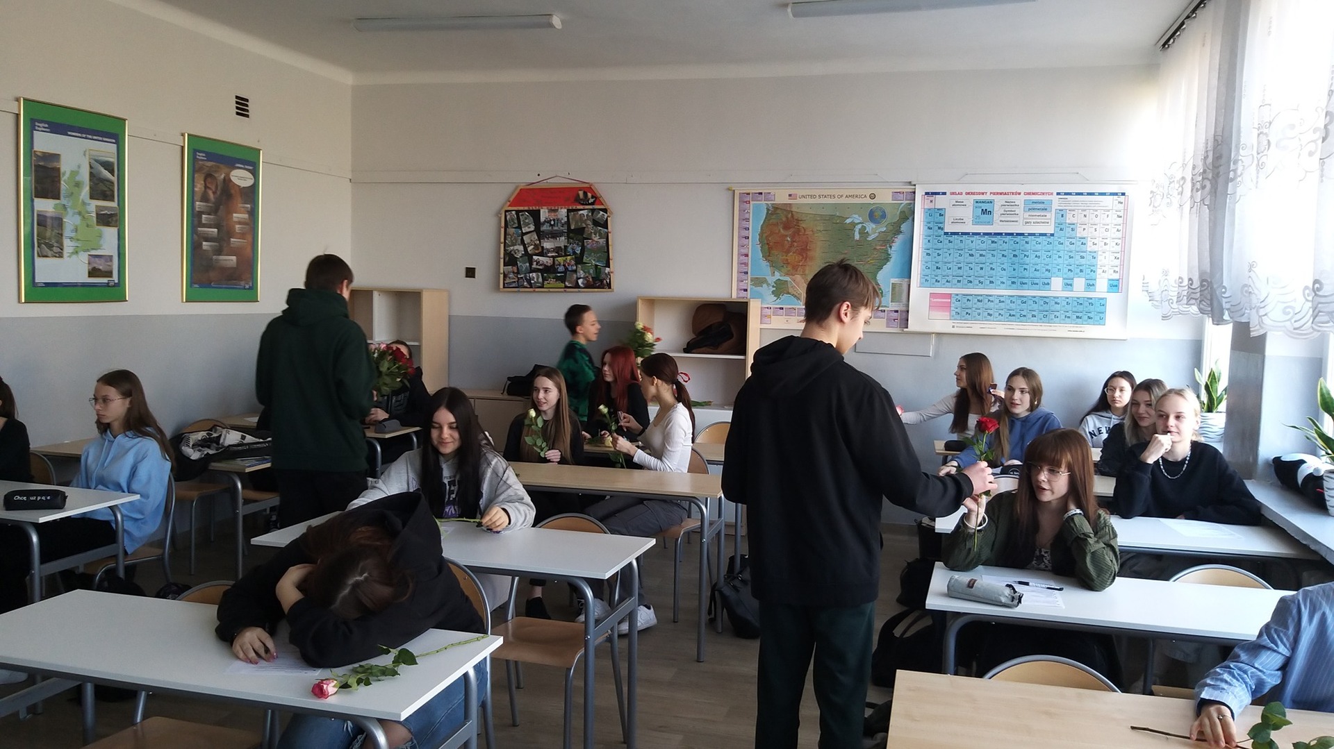 W dniu 8 marca 2024 r., obchodziliśmy w naszej szkole Dzień Kobiet i Dzień Mężczyzn. Uczniowie z Samorządu Uczniowskiego wręczali kwiaty i słodycze. Niech ten dzień będzie dla wszystkich pełen radości i szczęścia! 🌷🌹🌸