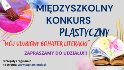 Serdecznie zapraszamy uczniów klas VII-VIII szkół podstawowych do udziału w Międzyszkolnym Konkursie Plastycznym z języka polskiego "MÓJ ULUBIONY BOHATER LITERACKI".