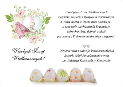 ŻYCZENIA ŚWIĄTECZNE 🌼🐣🐥🌷🐇 Zdjęcia Zobacz również MIĘDZYSZKOLNY KONKURS PLASTYCZNY „MÓJ ULUBIONY... ŚWIĘTO PATRONA NASZEJ SZKOŁY - TADEUSZA KOŚCIUSZKI... GÓRA GROSZA - PODSUMOWANIE AKCJI💰💰💰 ŻYCZENIA ŚWIĄTECZNE 🌼🐣🐥🌷🐇 DZIEŃ OTWARTY SZKOŁY 2024 🥳🥳🥳 TURNIEJ WIEDZY POŻARNICZEJ - ETAP POWIATOWY 🧑🚒🚒🧑🚒🚒 29 marca 2024 Aktualności Wydrukuj Udostępnij Wyświetlono: 98