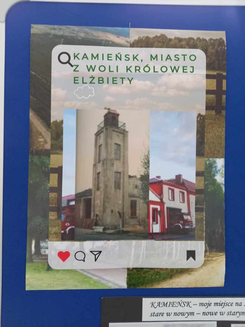 W dniu 15 kwietnia 2024 r. podczas Dnia Otwartego nastąpiło rozstrzygnięcie Międzyszkolnego Konkursu „ Kamieńsk - moje miejsce na Ziemi", który został zorganizowany przez naszą szkołę. Miał on na celu promocję gminy Kamieńsk, jej piękna i ciekawych miejsc poprzez połączenie rzeczywistości współczesnej z historyczną w formie kolażu. W ten sposób chcieliśmy przypomnieć o 650. rocznicy nadania oraz 30. rocznicy odzyskania praw miejskich przez nasze miasto. Młodzież wykazała się dużą kreatywnością i pomysłowością tworząc piękne i niecodzienne kolaże.