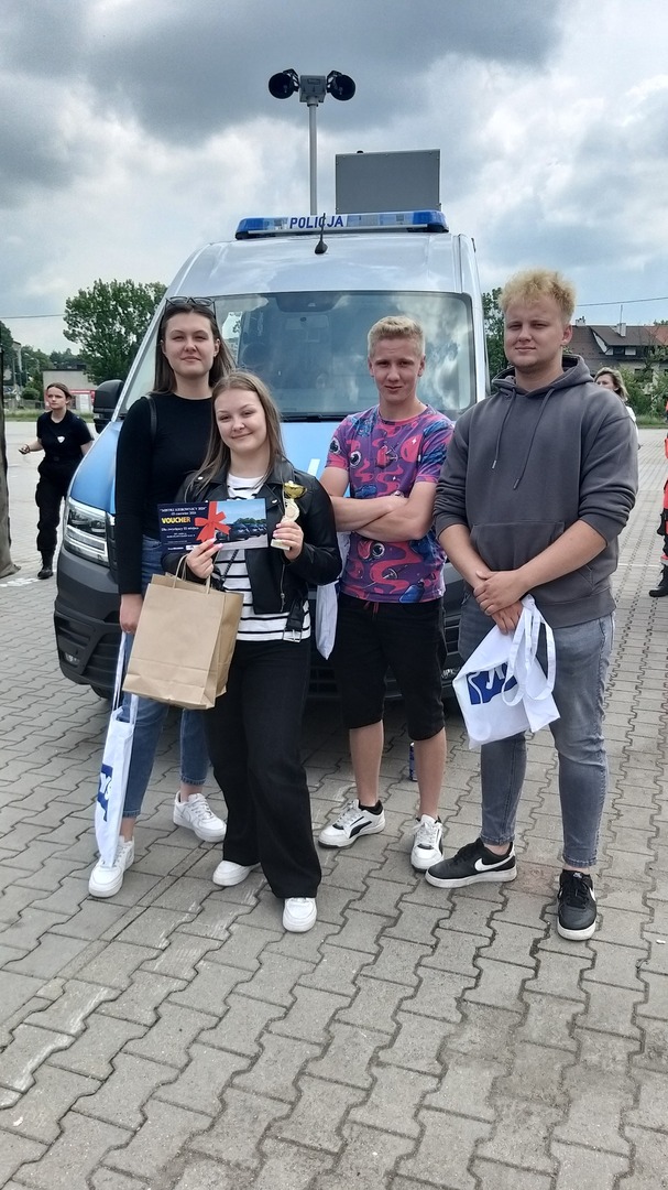 W finale mogła wziąć udział czteroosobowa drużyna z danej szkoły ponadpodstawowej ( dwie osoby posiadające uprawnienia do kierowania pojazdami oraz dwie osoby bez prawa jazdy). Naszą szkołę reprezentowała drużyna w składzie: Karolina Krupa – klasa III LO, Natalia Skura – klasa III LO, Wiktor Roczek – klasa IV T, Sebastian Szymczyk – klasa IV T. Nasza uczennica Karolina Krupa zajęła III miejsce🥉 wśród uczniów nieposiadających uprawnień do kierowania pojazdami. Serdecznie gratulujemy!!! 👏👏👏