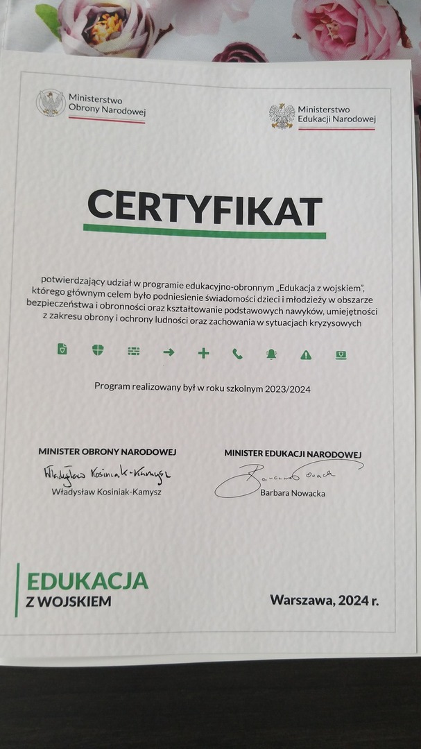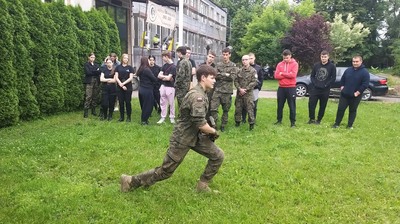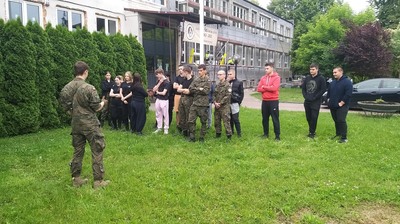 W dniu 4 czerwca 2024 r. uczniowie z klas mundurowych uczestniczyli w szkoleniu przeprowadzonym przez instruktora st. szer. Filipa Grabskiego z 93 Batalionu Lekkiej Piechoty w Łasku. Szkolenie odbyło się w ramach programu pn. „Edukacja z wojskiem” realizowanego we współpracy Ministerstwa Edukacji Narodowej i Ministerstwa Obrony Narodowej. Celem programu jest podniesienie świadomości dzieci i młodzieży w obszarze bezpieczeństwa i obronności oraz kształtowanie podstawowych nawyków i umiejętności z zakresu obrony i ochrony ludności oraz zachowania w sytuacjach kryzysowych.