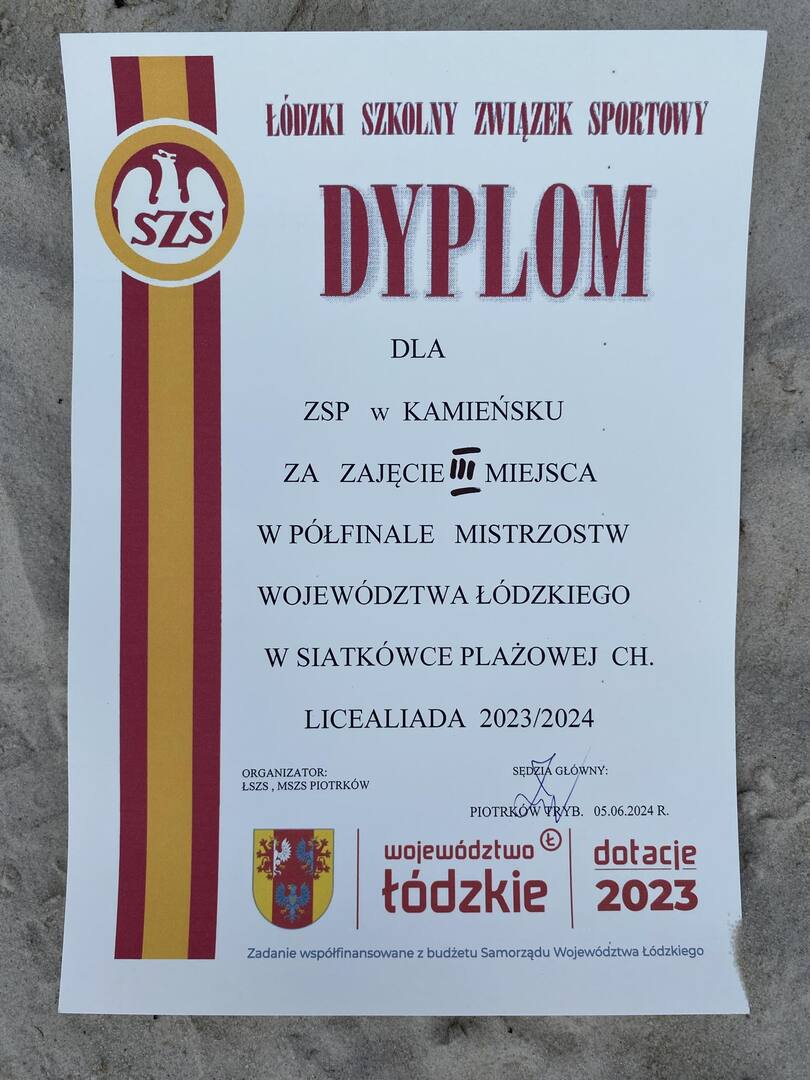 W dniu 05.06.2024 r. w Sulejowie rozegrano Półfinał Mistrzostw Województwa Łódzkiego w Siatkówce Plażowej Chłopców i Dziewcząt. Naszą szkołę reprezentowały: Nicola Wawszczak z klasy III LO oraz Natalia Siewier z klasy IV LO. Dziewczyny zajęły II miejsce🥈💪 i awansowały do Finału Mistrzostw Województwa Łódzkiego, który odbędzie się 07.06.2024 r. w Łodzi. Drużynę chłopców reprezentowali: Hubert Wawszczak z klasy IV LO oraz Hubert Migalski z klasy III LO. Chłopcy zajęli III miejsce🥉💪. Jesteśmy dumni i serdecznie gratulujemy!!! 👏👏👏