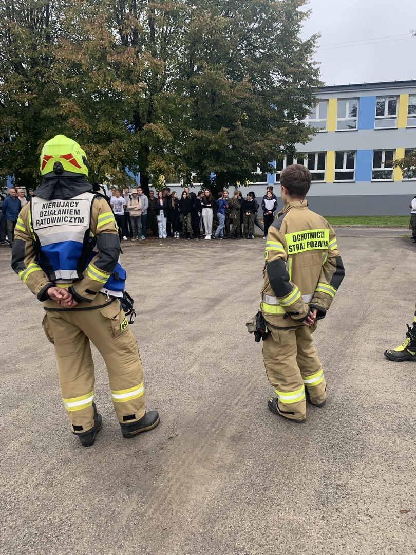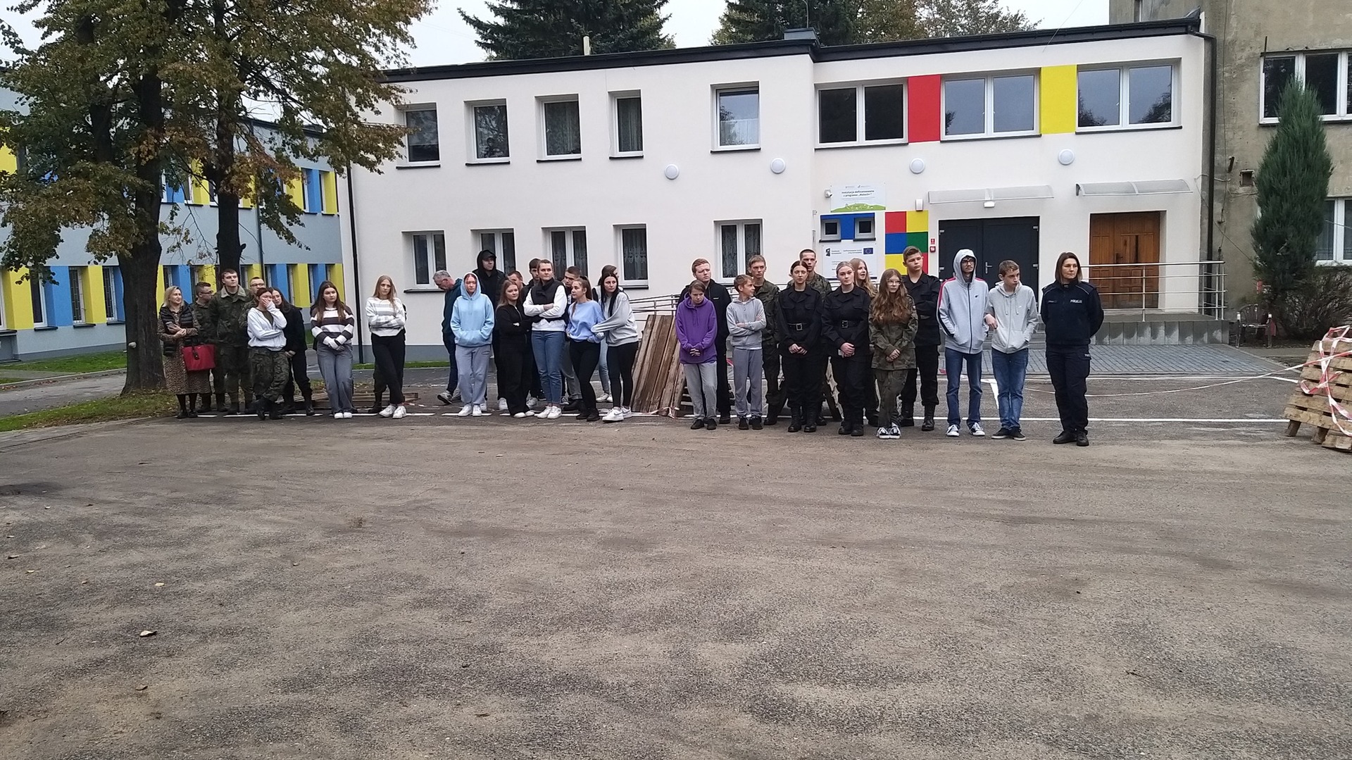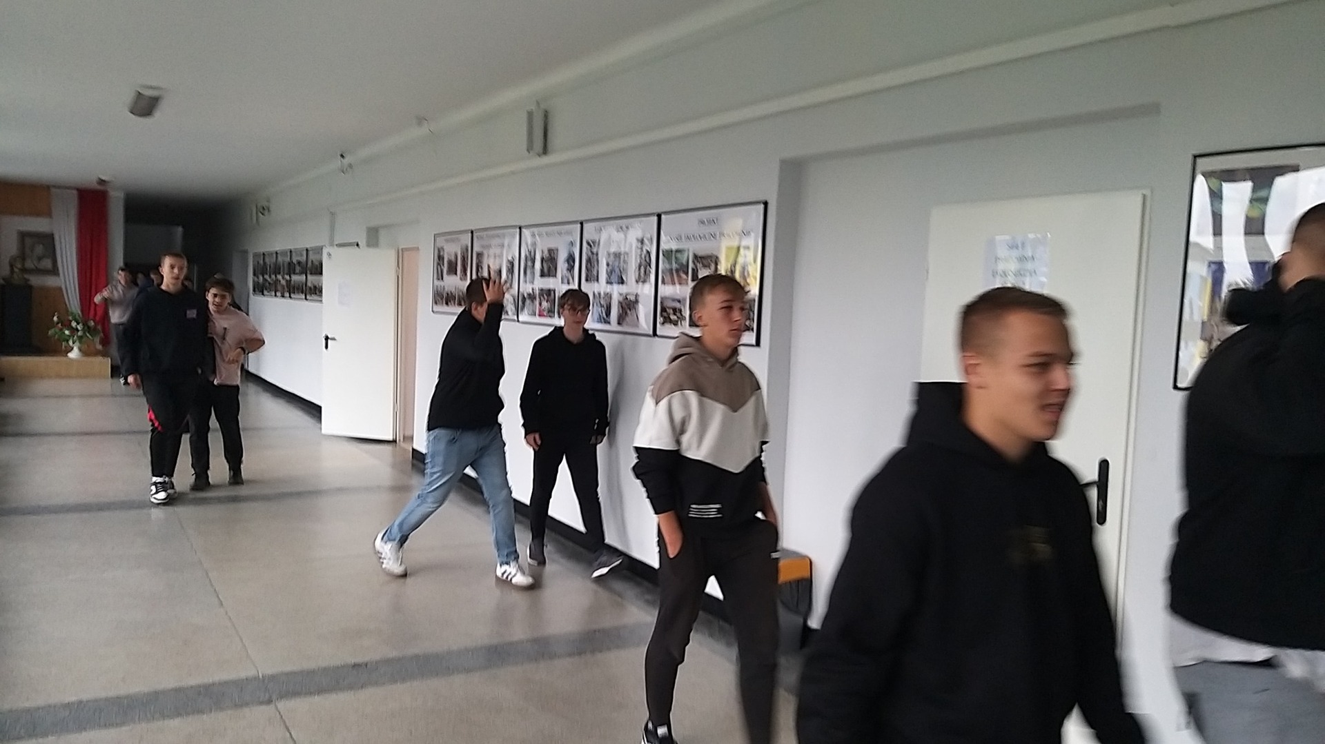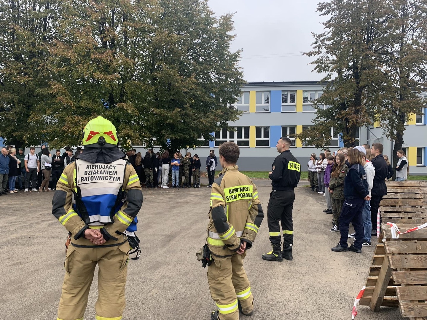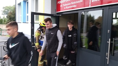 W dniu 4 października 2024 r. odbyła się próbna ewakuacja, której celem było przypomnienie planu ewakuacji szkoły i wypracowanie właściwych zachowań podczas ewentualnych zagrożeń. W zorganizowaniu próbnej ewakuacji pomagali członkowie Ochotniczej Straży Pożarnej w Kamieńsku pod przewodnictwem p. Marcina Ozgi – ratownika medycznego KP PSP Radomsko, strażaka i naszego absolwenta. Wśród druhów są nasi obecni uczniowie oraz absolwenci naszej szkoły. Ewakuacja rozpoczęła się około godz. 9:00, po zauważeniu na korytarzu gęstego dymu. Dym, który pojawił się na korytarzach szkoły był sztuczny i nieszkodliwy dla ludzi. Został on celowo rozprowadzony, aby uczestnicy ewakuacji mogli mieć zbliżone warunki do tych, które panują podczas pożaru, gdzie widoczność jest bardzo ograniczona. Nauczyciele, uczniowie oraz pracownicy administracji i obsługi, zgodnie z procedurami opuścili budynek szkoły i udali się do wyznaczonego miejsca zbiórki.