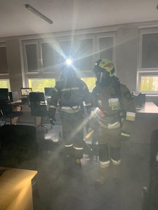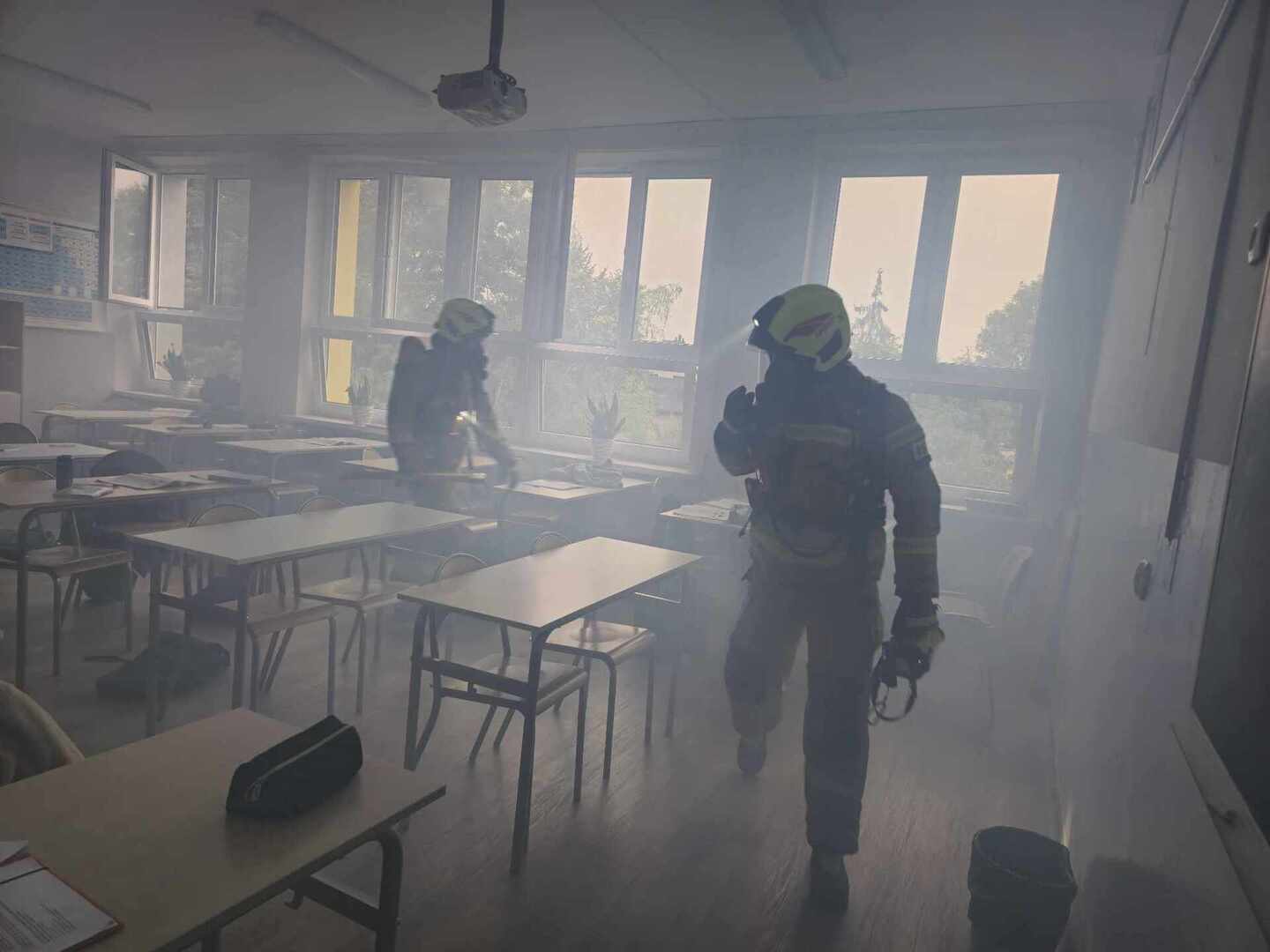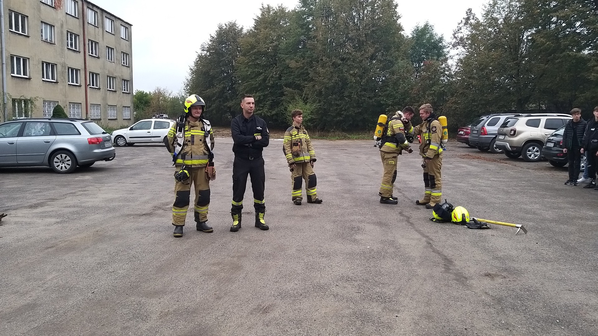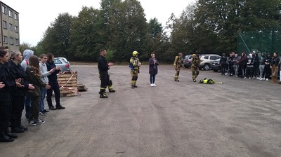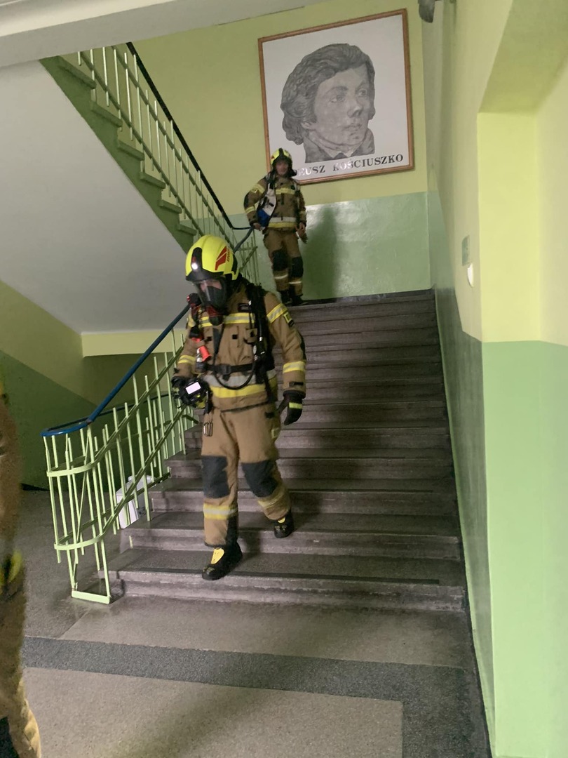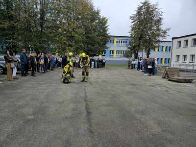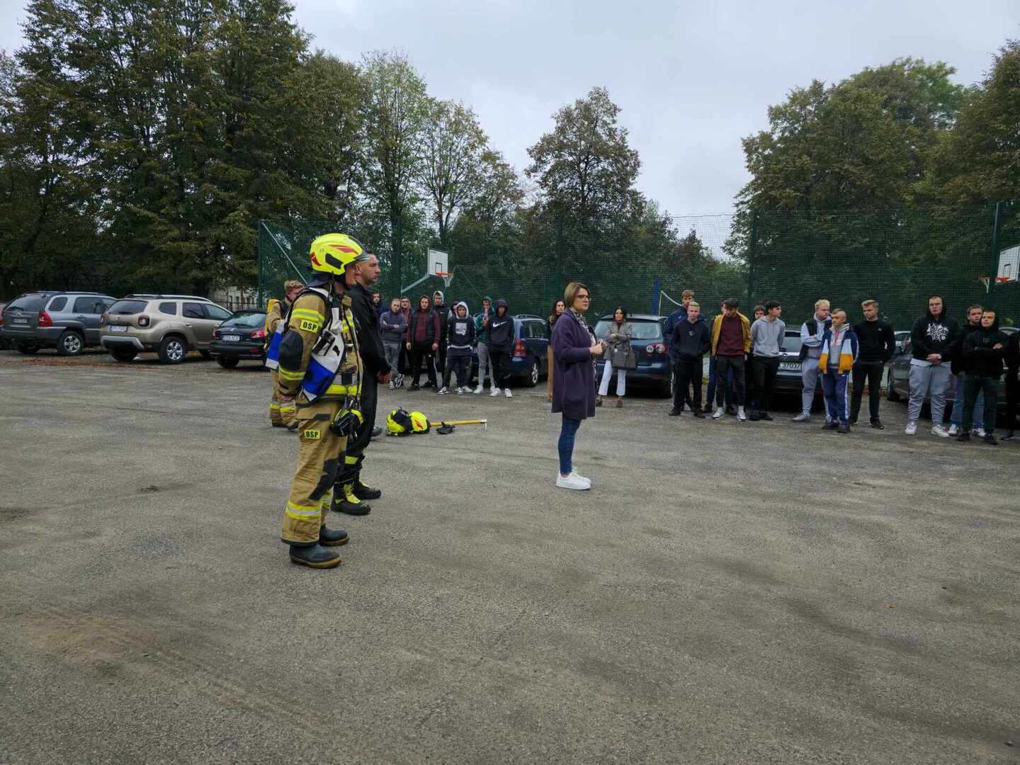 W dniu 4 października 2024 r. odbyła się próbna ewakuacja, której celem było przypomnienie planu ewakuacji szkoły i wypracowanie właściwych zachowań podczas ewentualnych zagrożeń. W zorganizowaniu próbnej ewakuacji pomagali członkowie Ochotniczej Straży Pożarnej w Kamieńsku pod przewodnictwem p. Marcina Ozgi – ratownika medycznego KP PSP Radomsko, strażaka i naszego absolwenta. Wśród druhów są nasi obecni uczniowie oraz absolwenci naszej szkoły. Ewakuacja rozpoczęła się około godz. 9:00, po zauważeniu na korytarzu gęstego dymu. Dym, który pojawił się na korytarzach szkoły był sztuczny i nieszkodliwy dla ludzi. Został on celowo rozprowadzony, aby uczestnicy ewakuacji mogli mieć zbliżone warunki do tych, które panują podczas pożaru, gdzie widoczność jest bardzo ograniczona. Nauczyciele, uczniowie oraz pracownicy administracji i obsługi, zgodnie z procedurami opuścili budynek szkoły i udali się do wyznaczonego miejsca zbiórki.