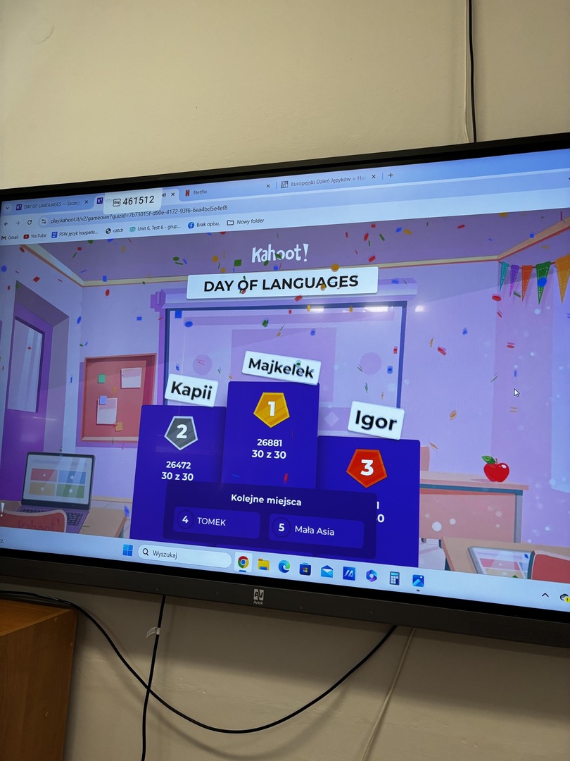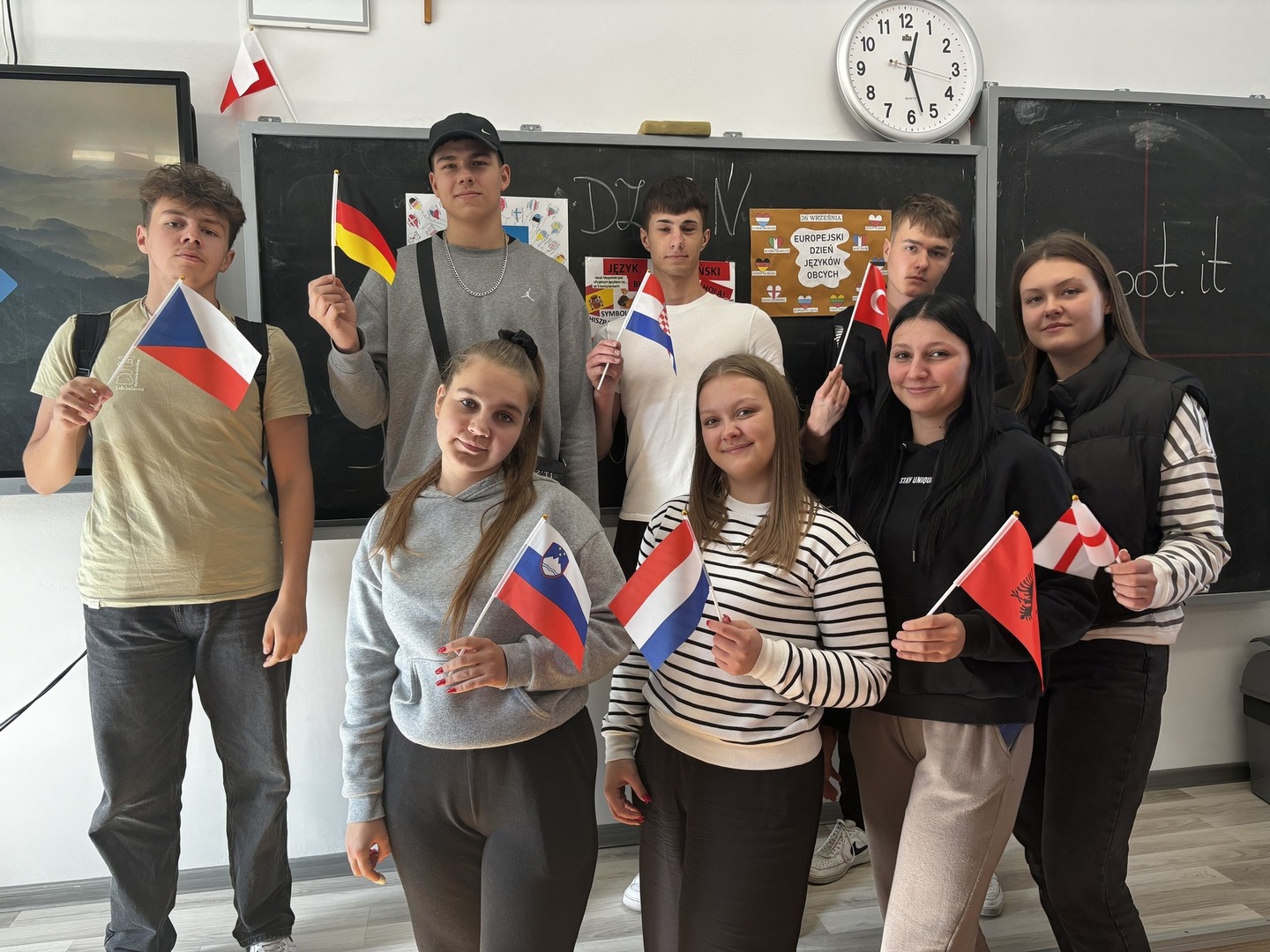 26 września 2024 r. obchodziliśmy Międzynarodowy Dzień Języków Obcych. W tym dniu chcieliśmy szczególnie podkreślić, jak ważna jest nauka języków obcych. Grupa językowa z klasy II liceum szczególnie zaangażowała się w organizację tego wydarzenia i wraz z opiekunami przygotowali przekąski, krótką prezentację oraz quiz konkursowy dotyczący rozpoznawania flag świata. W quizie przeprowadzonym w aplikacji kahoot wzięło udział ponad 60 uczniów - najlepsi zostali nagrodzeni. Po wyzwaniach intelektualnych uczniowie mieli czas na relaks oglądając film w języku angielskim.