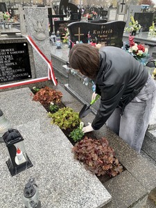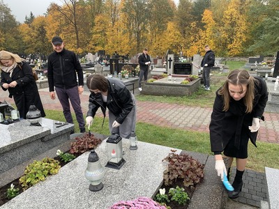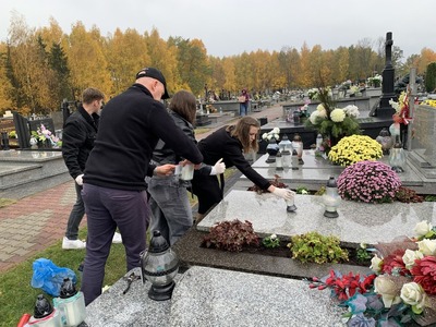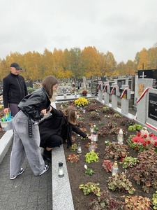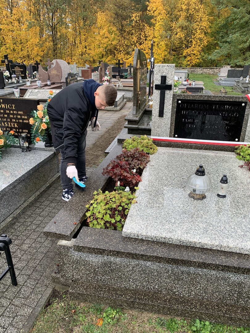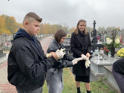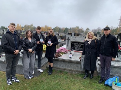 W dniu 29 października 2024 r. uczniowie naszej szkoły wraz z opiekunami p. Anną Baron, p. Martą Ziółkowską i ks. Pawłem Bilem odwiedzili cmentarz w Kamieńsku. Okres poprzedzający dzień Wszystkich Świętych to odpowiedni moment na wspomnienie o tych, którzy odeszli od nas. Uczniowie posprzątali grób żołnierski, odwiedzili groby zmarłych nauczycieli, zapalili znicze oraz zmówili modlitwę, aby uczcić ich pamięć.