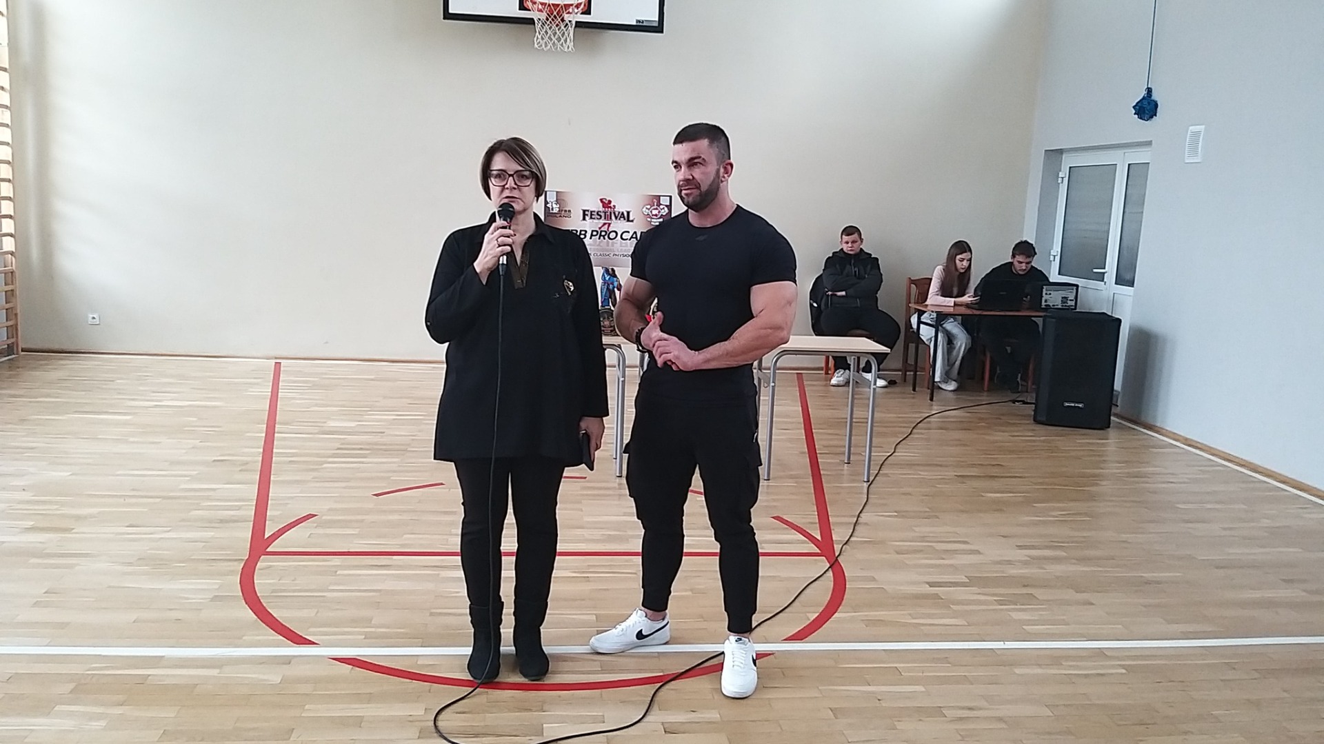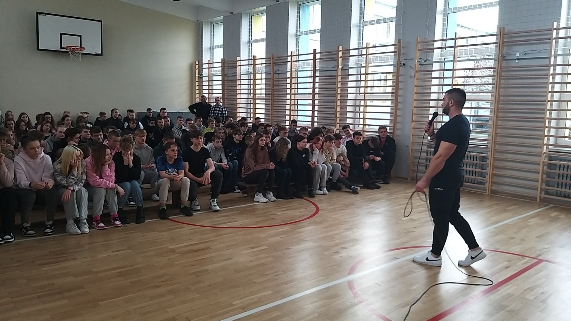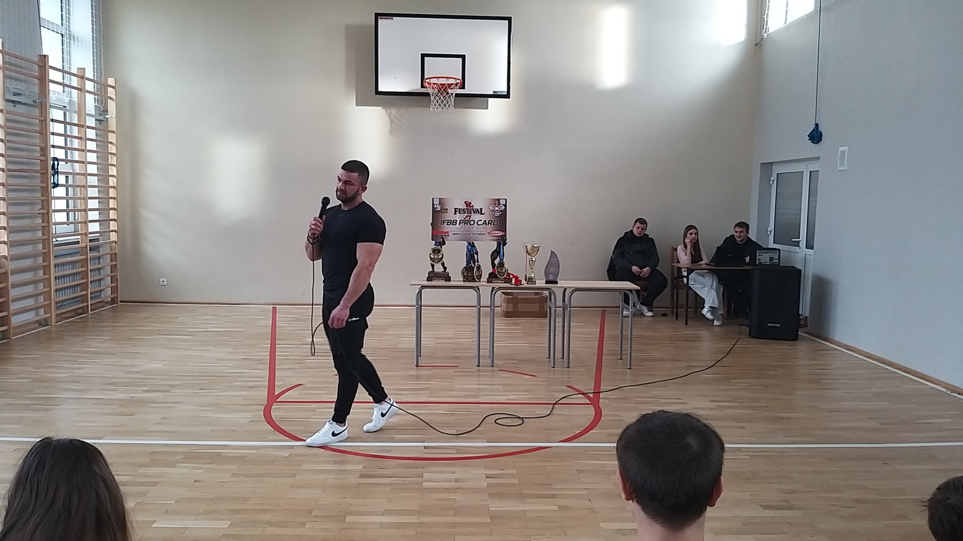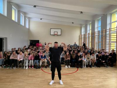 W ramach „Tygodnia Zdrowia” w naszej szkole odbyło się spotkanie z kulturystą p. Karolem Rogaczewskim – trenerem personalnym, sportowcem i naszym ABSOLWENTEM, który zdobył tytuł MISTRZA 🏆 i WICEMISTRZA Polski w Fitnessie Plażowym 🥈, a także: