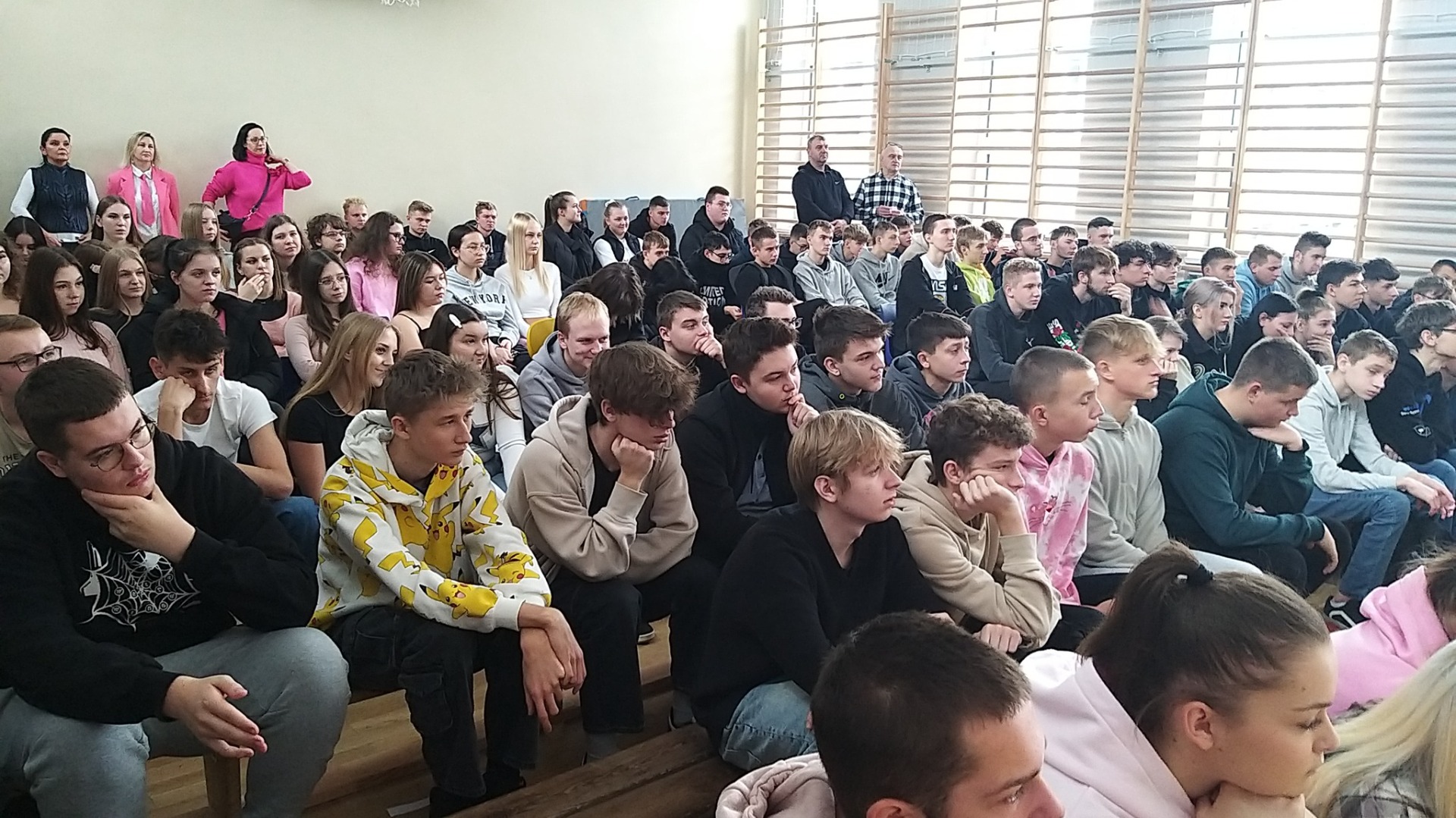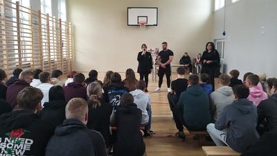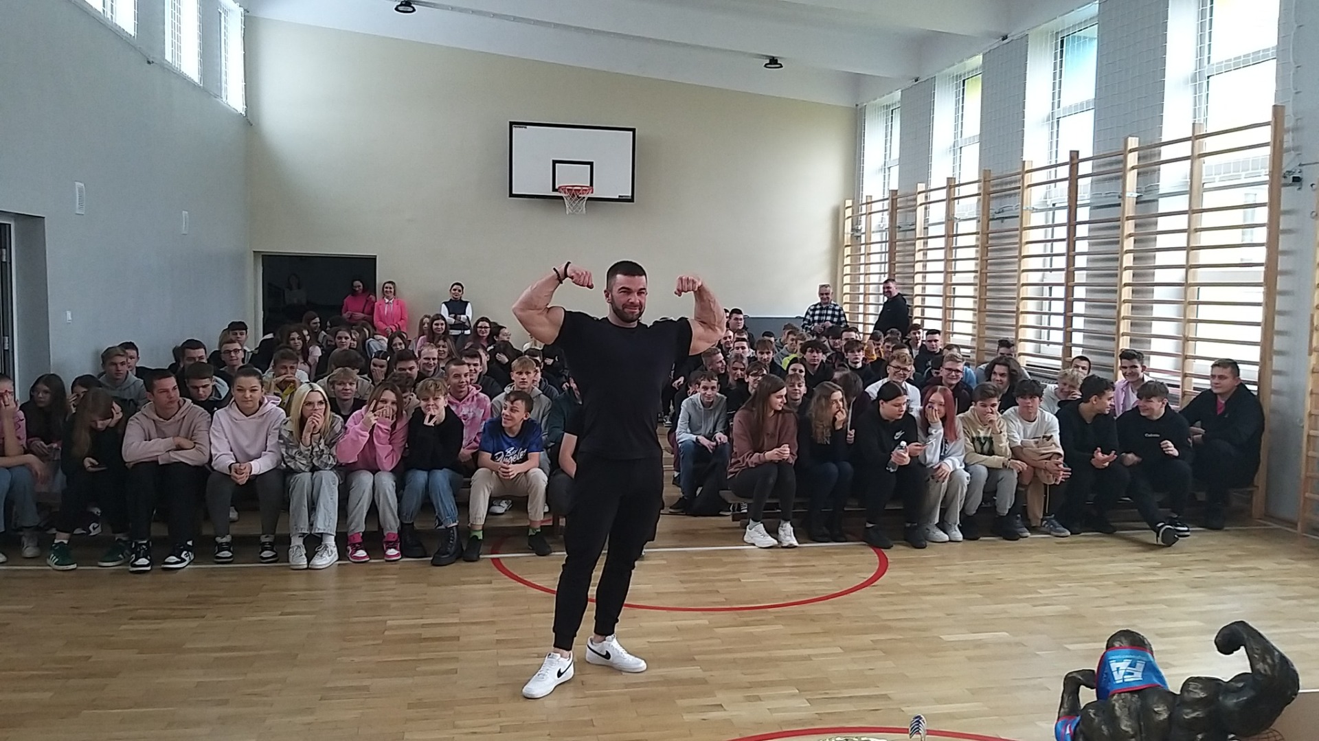 Podczas spotkania z panem Karolem dowiedzieliśmy się skąd wzięła się u niego pasja do sportu i dlaczego zajął się właśnie sportami siłowymi. Ponadto na prośbę uczniów zaprezentował kilka póz wymaganych podczas konkursów kulturystycznych. Celem spotkania było przybliżenie młodzieży tematyki zdrowego odżywiania w sporcie oraz przekonanie uczniów, że droga sportowa to dobry kierunek na osiągnięcie satysfakcji zarówno z życia osobistego jak i zawodowego. 🙂🙂🙂