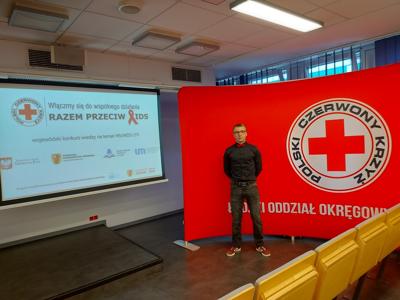 28 listopada z okazji Światowego Dnia Walki z AIDS, odbyła się X edycja wojewódzkiego konkursu wiedzy na temat HIV/AIDS i STD pod nazwą "Włączamy się do wspólnego działania - razem przeciw AIDS", którego celem jest podniesienie poziomu wiedzy młodzieży na temat zagrożeń związanych z ryzykownymi zachowaniami, a także promocja działań prozdrowotnych, w tym profilaktyka HIV/AIDS oraz innych chorób przenoszonych drogą płciową. Naszą szkołę reprezentował Dominik Gałwa, który zajął I miejsce🥇 w etapie szkolnym, w którym uczestniczyło 30 uczniów. Konkurs zorganizowany został przez Łódzki Odział Okręgowy Polskiego Czerwonego Krzyża, natomiast Wydział Nauk o Zdrowiu Uniwersytetu Medycznego w Łodzi był jednym z partnerów wydarzenia, patronat honorowy nad konkursem objęli: Wojewoda Łódzki, Marszałek Województwa Łódzkiego, Łódzki Kurator Oświaty. Serdecznie gratulujemy Dominikowi wiedzy oraz pięknie wykonanej prezentacji na konkurs! 👏👏👏